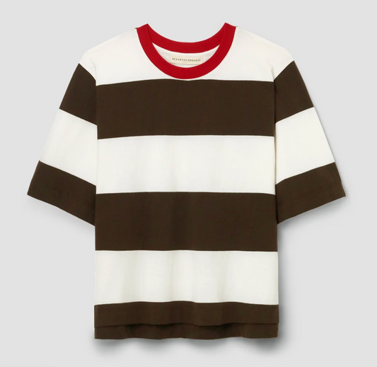 Bay-Sue Organic Cotton Jersey Stripe Top | Cacao and White Wide Stripe