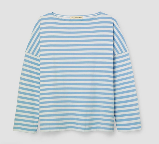 Bay-Sue Organic Cotton Jersey Stripe Top | Pale Blue and White Stripe