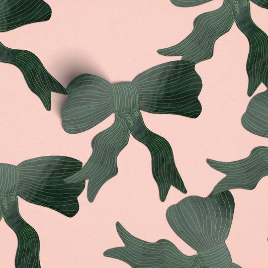 Green Striped Bow Matte Gift Label Sticker