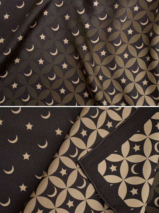 "Moonlit Stars" Silk Bandana Scarf - Black
