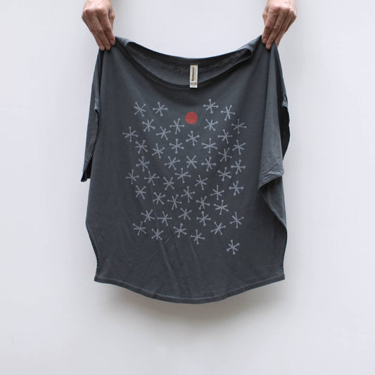 Jacks Game Mid Century Print Dolman Sleeve Top Gray