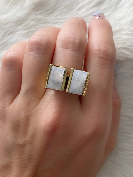 Claire Double Rectangle Cut Brass Ring with Moonstone