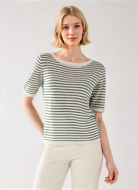 Linen Knit Elbow Sleeve Boatneck
