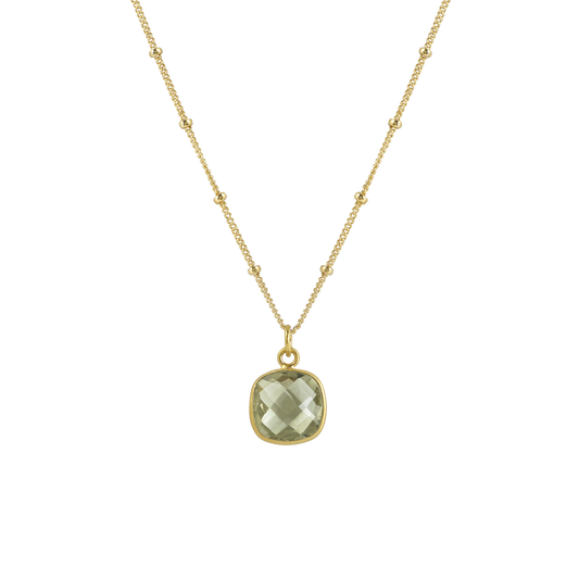 AMET- Square Faceted Green Amethyst Necklace in Silver or Vermeil