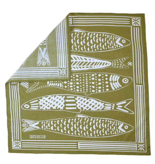 Sardines Tea Towel in Black - Organic Cotton - Fish Print