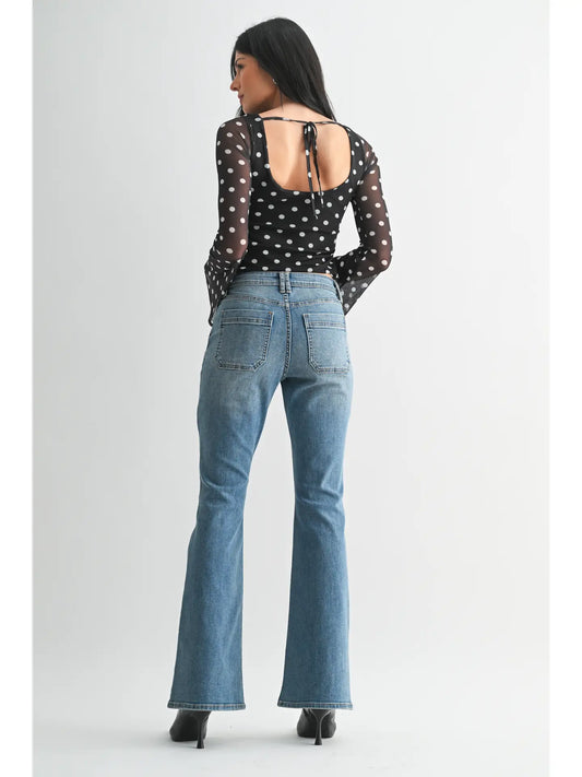 Celine High Rise Boot Cut Jeans - Medium Wash
