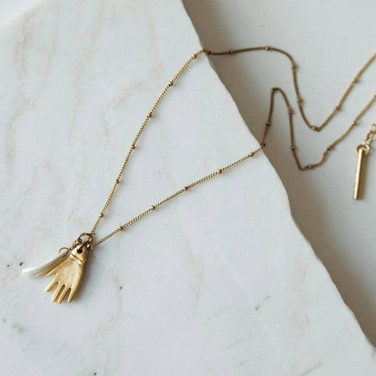 Hand + Pearl Charm Necklace