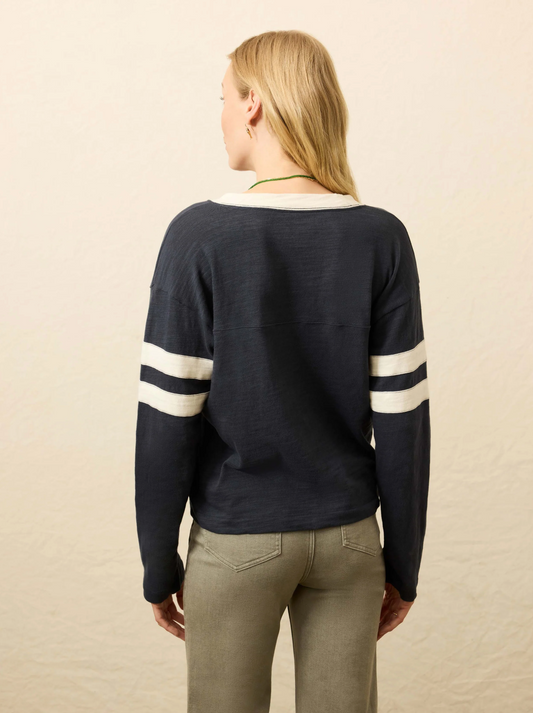Faherty Organic Cotton Sunwashed Slub Varsity V-Neck | Blue Nights