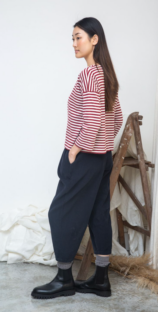 Beaumont Organic Leia-Sue Organic Cotton Stripe Jersey Top |Burgundy & Off White Stripe