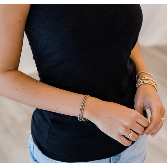 #B - BOHO Bracelet Stack in Platinum + Gold Filled 2mm + 4mm