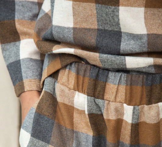 Beaumont Organic Evora Brushed Cotton Trouser - Tan Check