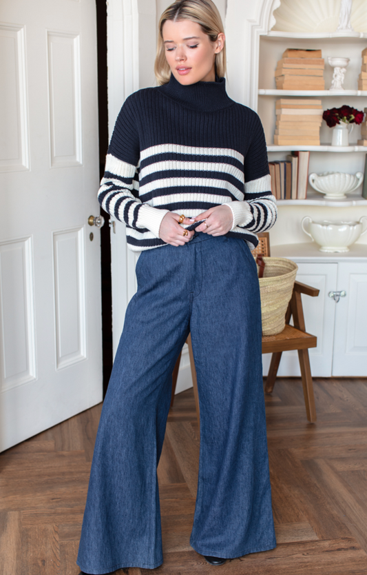 Emerson Fry Mandarin Collar Top - Blue Indigo Stripe Organic