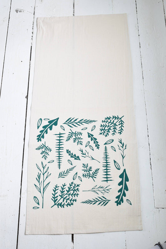 Organic Cotton Woodland Ferns Tea Towel in Dark Green - Eco