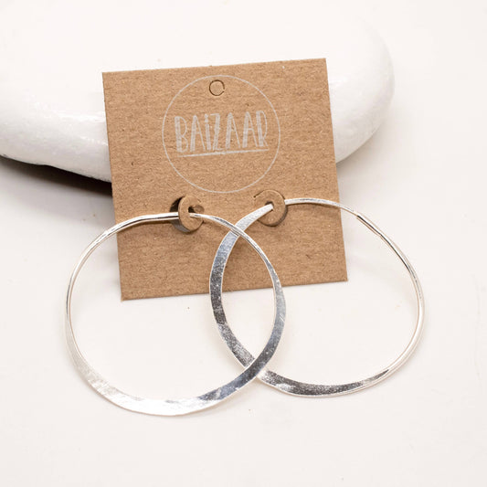 Sterling Silver Brushed Hoop Earring - BR6