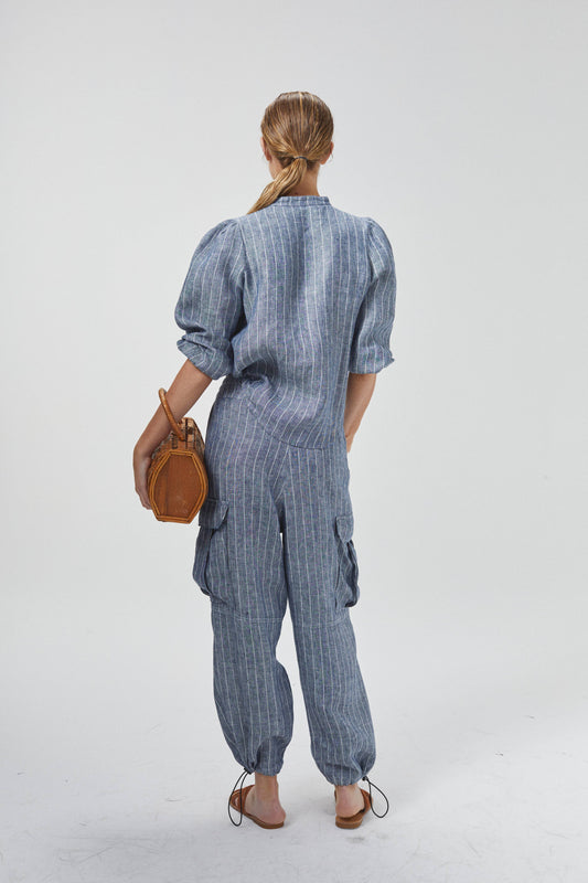 Cargo Linen Pants - Navy Stripes