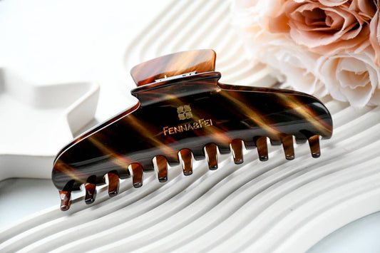 Glamour Grip XL Claw in Tigers Eye | Bronze Brown Gold Shimmer | Italian Acetate Tortoise XL Hair Clip