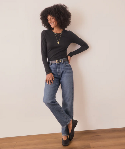 Lexi Rib Sun-In Longsleeve Crew Tee | Black