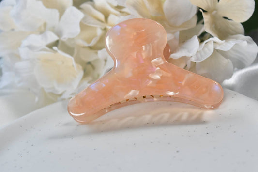 French Claw in Peach | Pink Orange Marbled | Acetate and Stainless Steel Hair Claw Clip