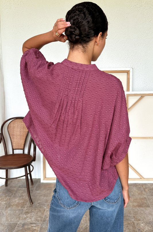 Emerson Fry Mandarin Collar Top - Crushed Berry