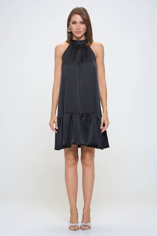 Plisse V neck Dress with Asymmetrical Hem (Made in USA)