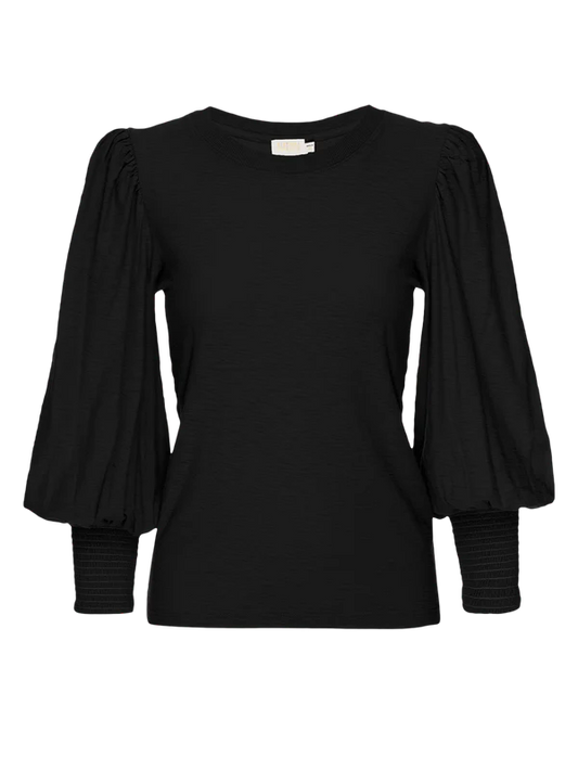 Loren Smocked Peasant Tee | Jet Black