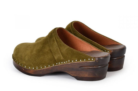 Da Vinci Olive Suede Clogs