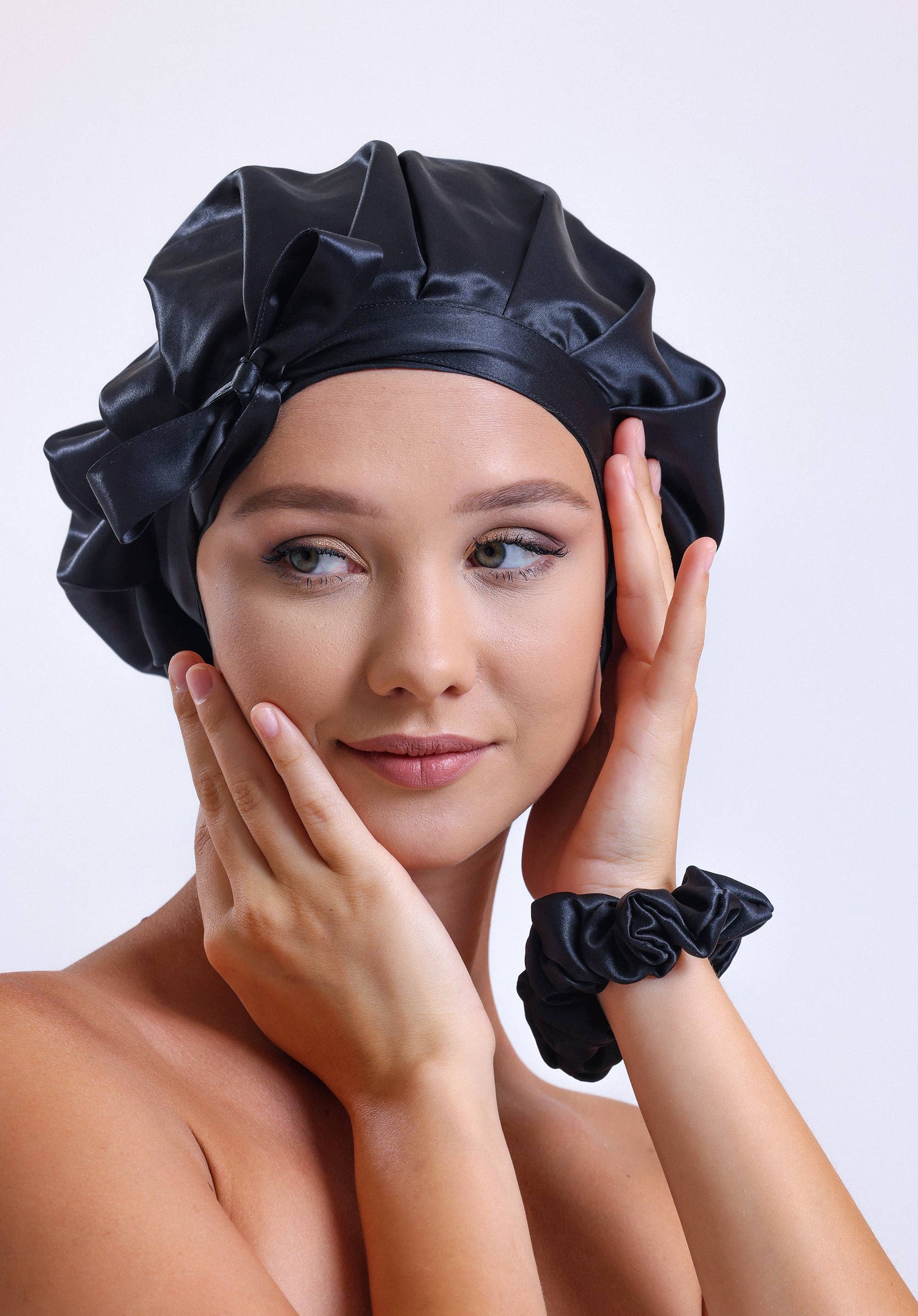 100% Organic Pure Silk Hair Bonnet - Black