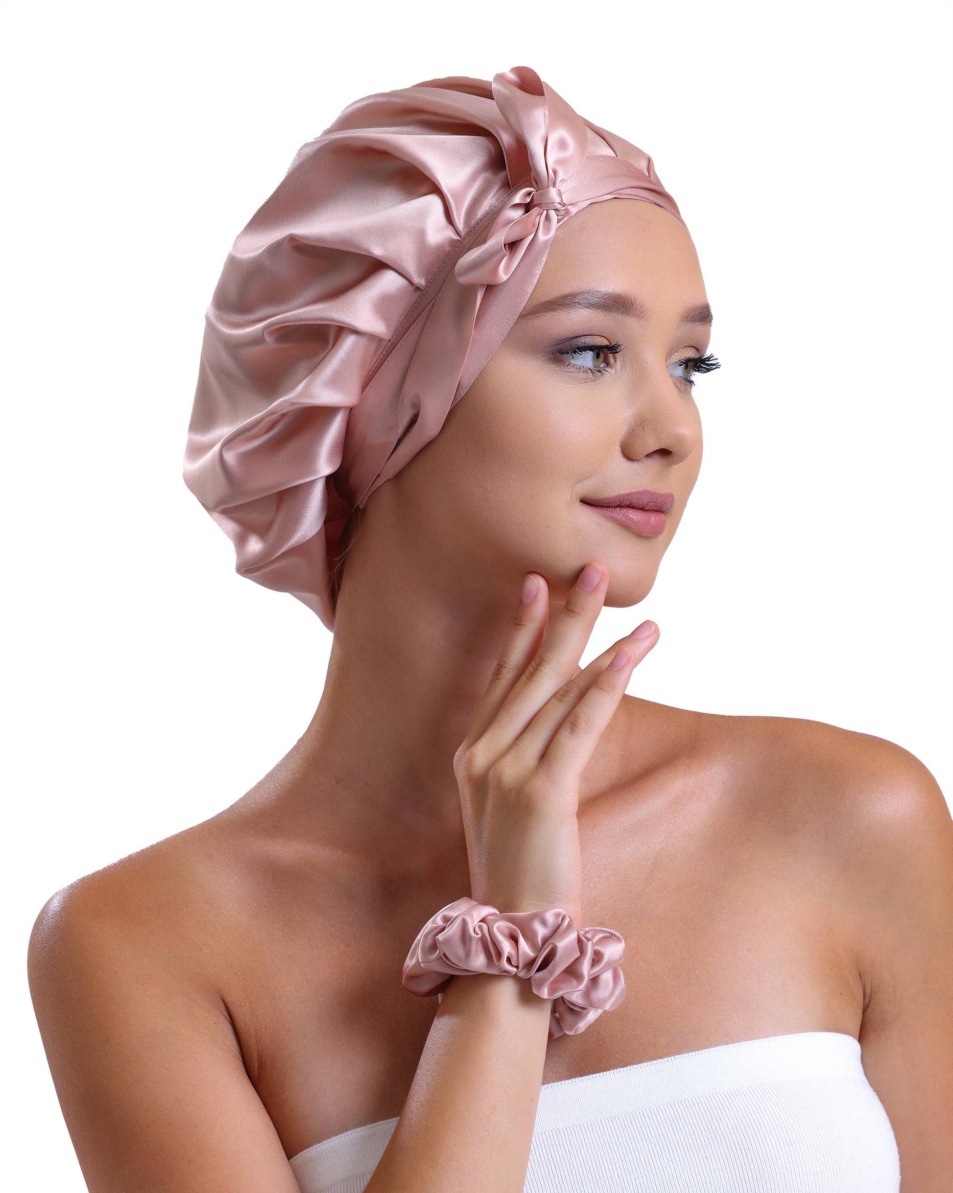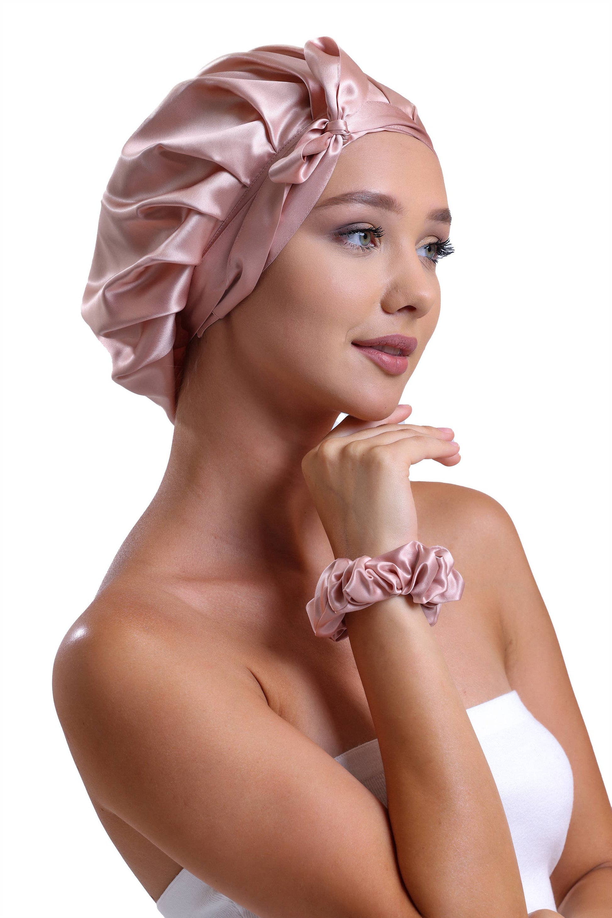 100% Organic Pure Silk Hair Bonnet - Rose Gold Pink