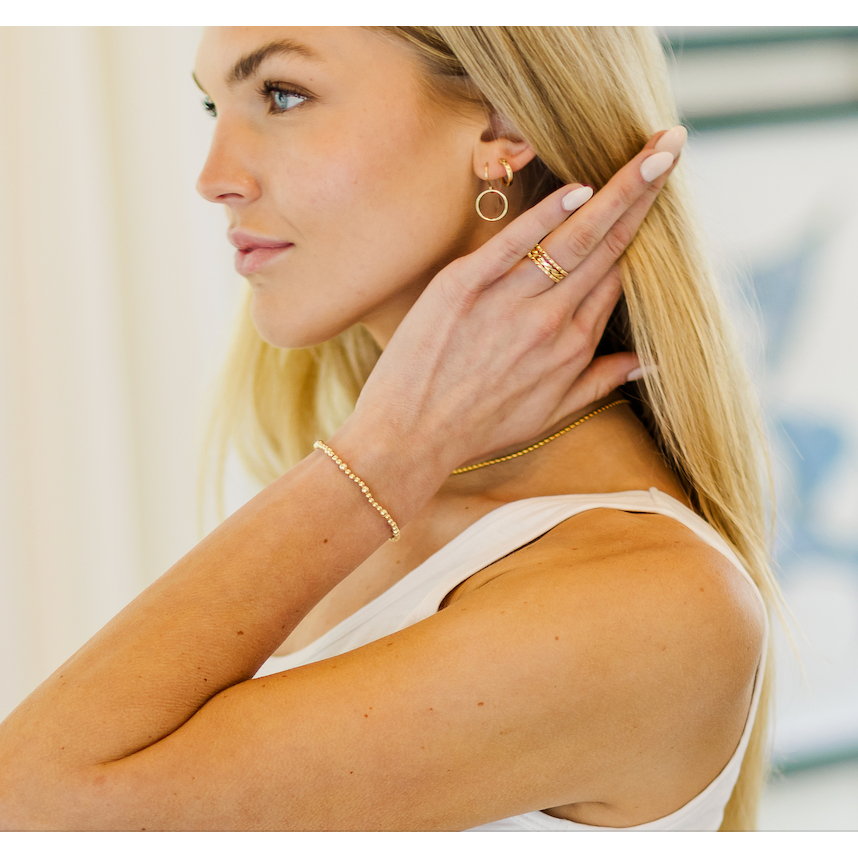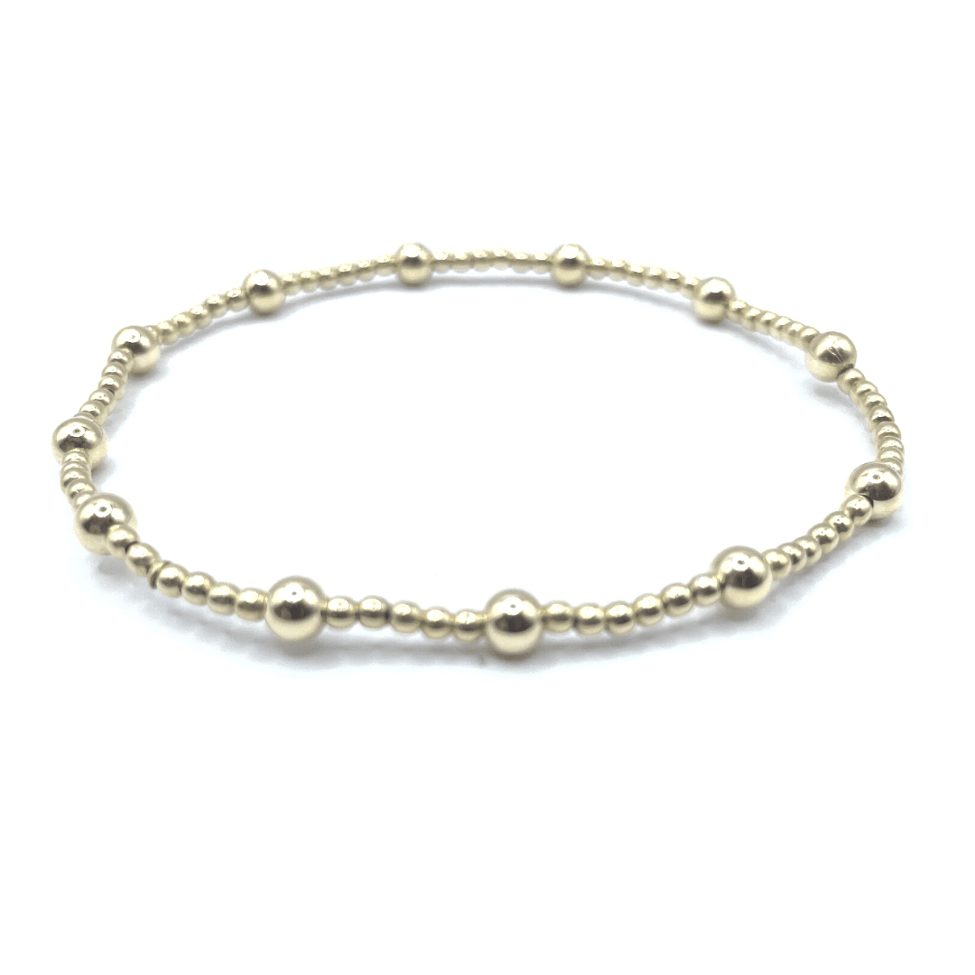 14k gold filled 2mm beaded stretch bracelet with twelve 4mm gold filled beads. wear single or stack it. part of our erin gray waterproof collection. Available in 6.5" / 7.0" / 7.25"