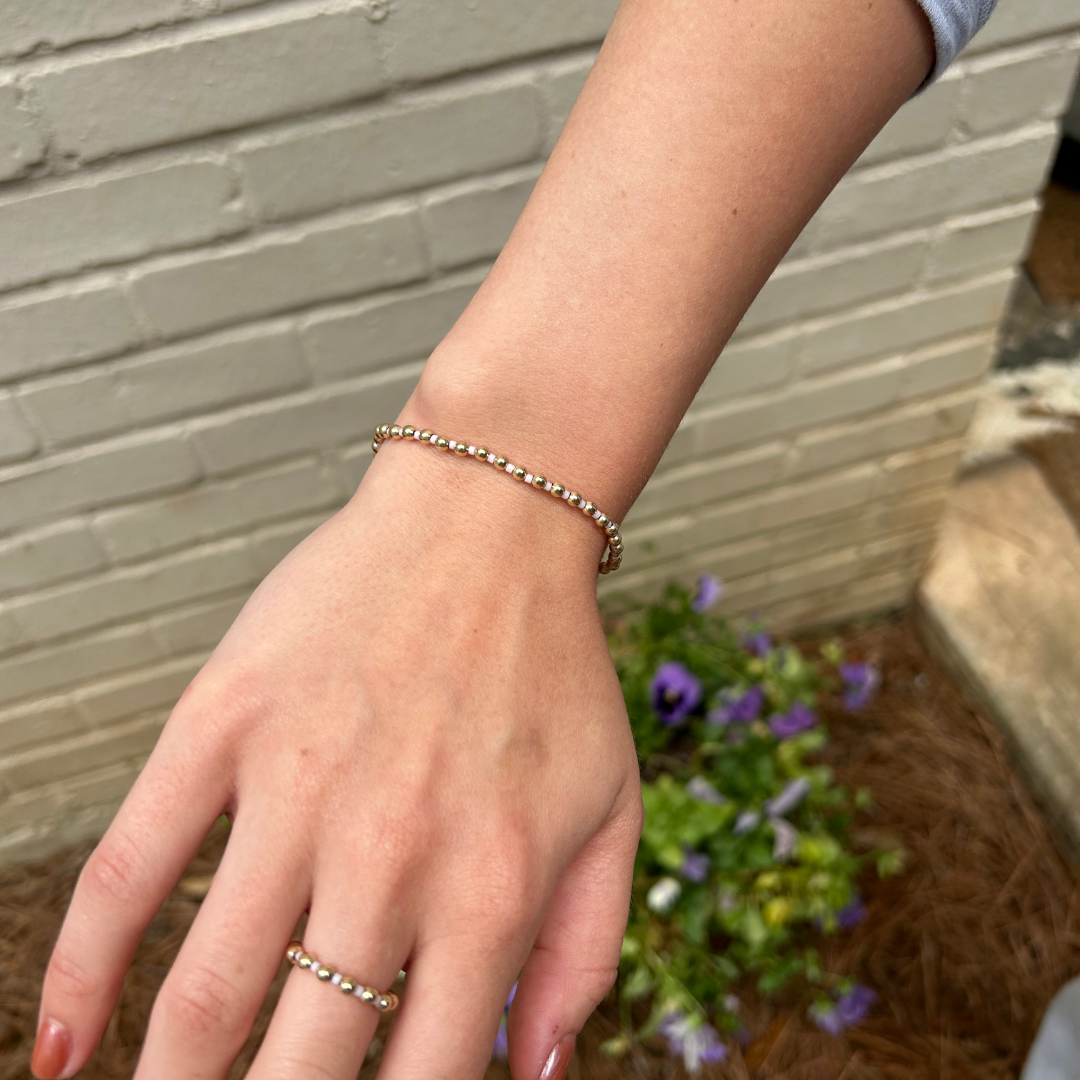 erin gray's new Color Crush beaded stretch ring with 3mm gold filled beads and pink beads * Gold Filled * Waterproof * One Size * R-CC-PK