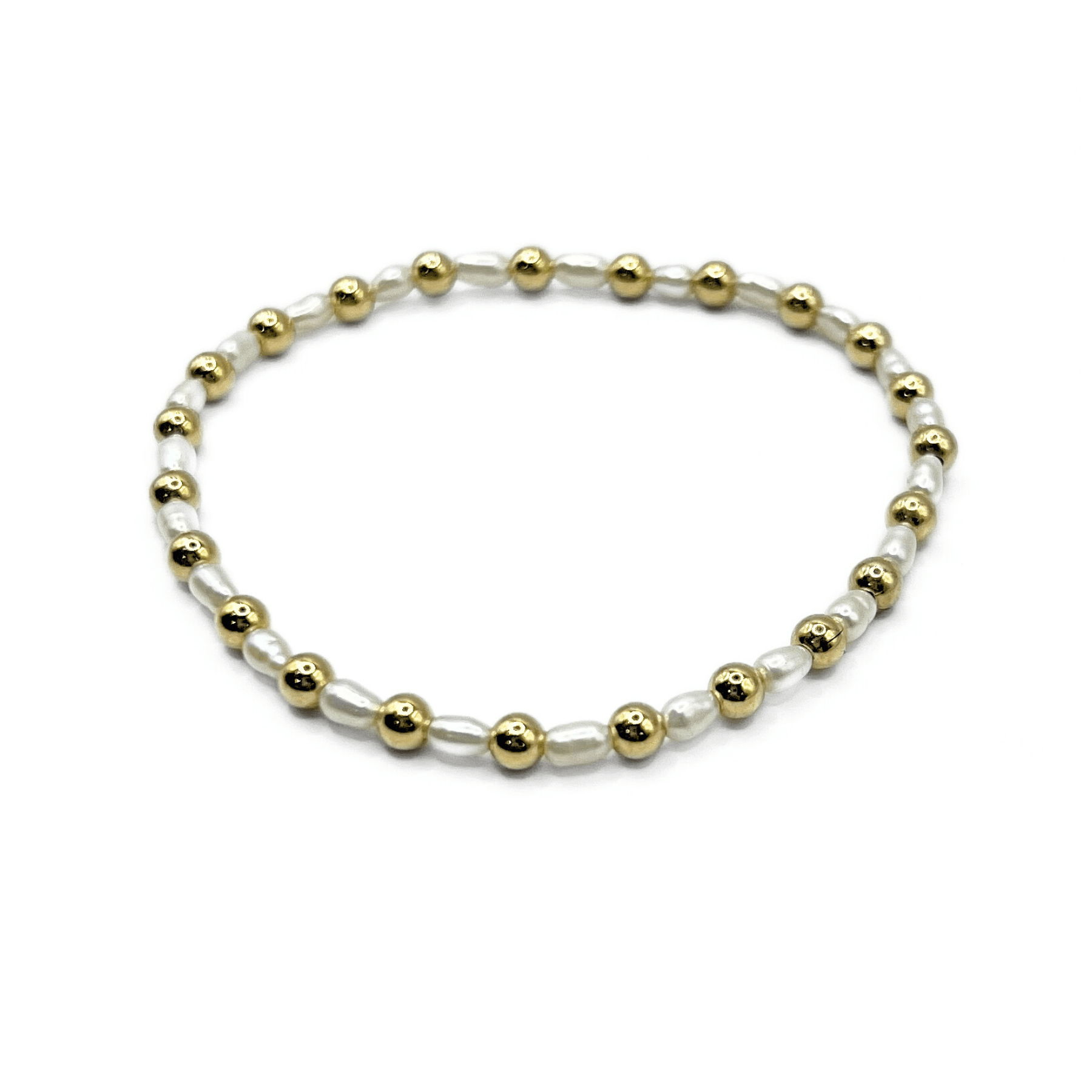 14k gold filled beads with fresh water pearls stretch bracelet. Wear single or stack it. Part of our erin gray waterproof collection. Available in 6.5" and 7" bracelets.