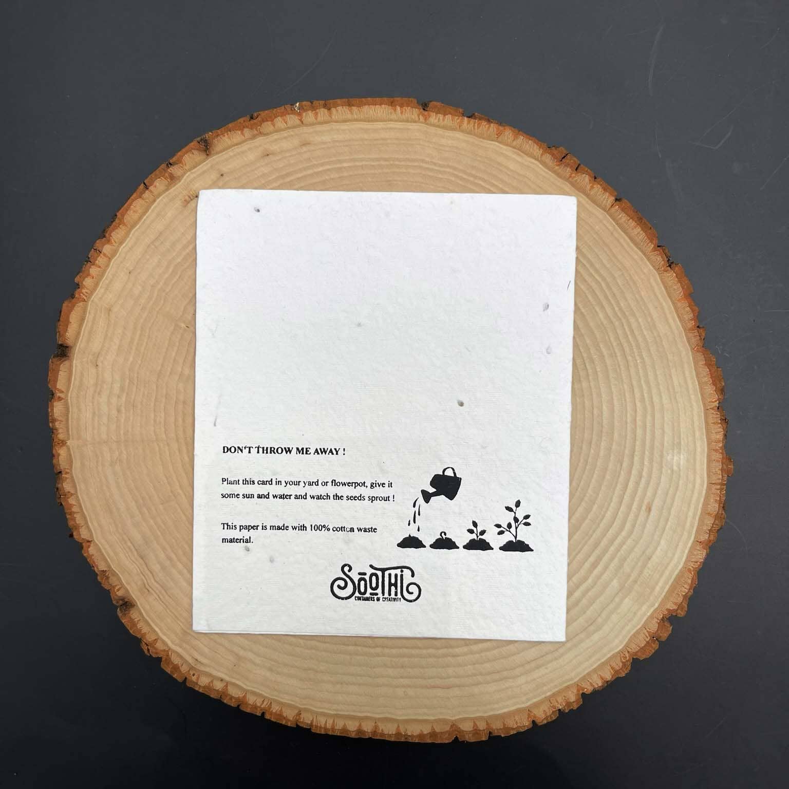 All of our greeting cards are made from recycled cotton waste. No trees are cut down. When finished, plant our cards and flowers will grow. Each order helps us plant trees.