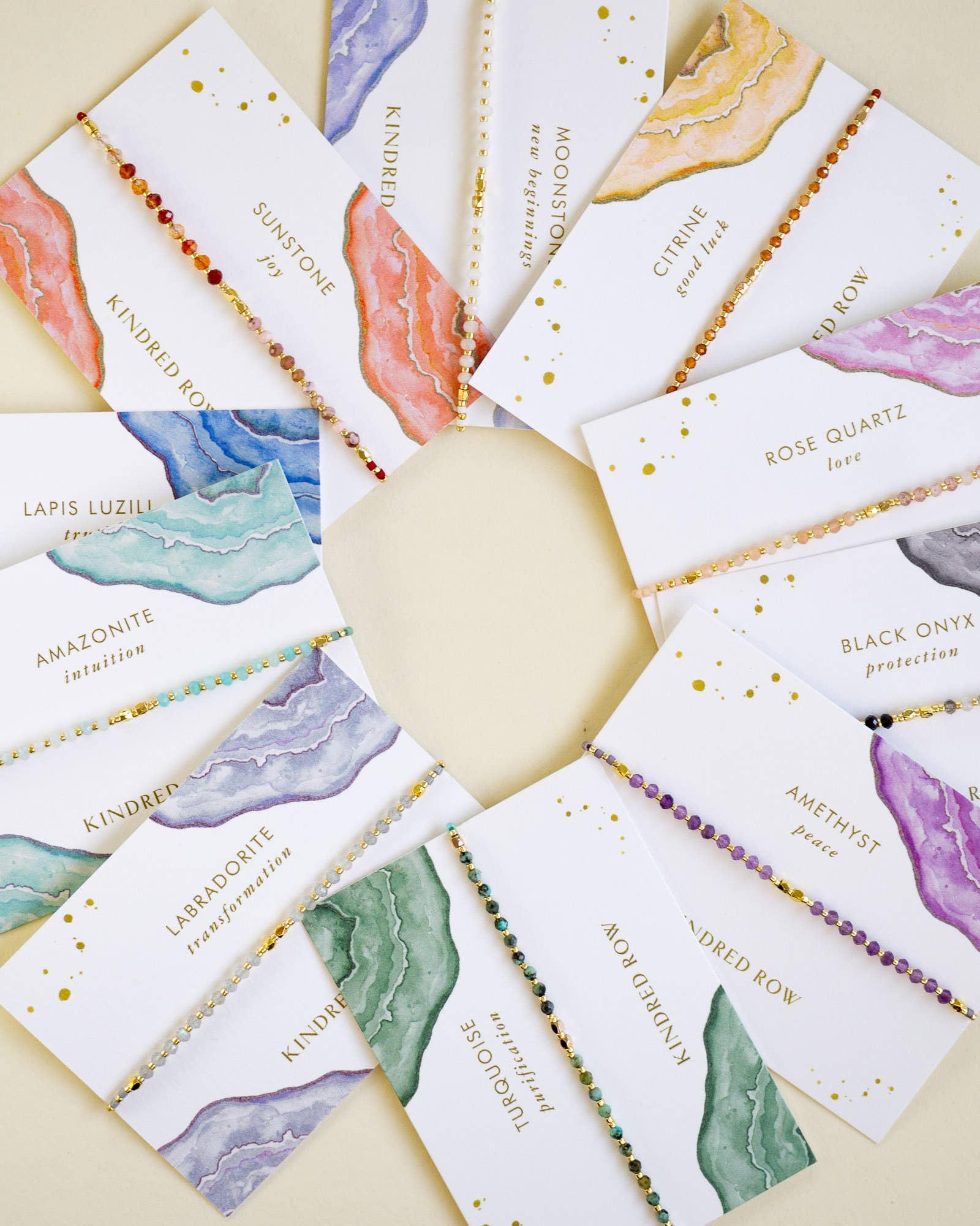 Handmade with 2-3mm natural gemstones • adjustable soft cotton cord - fit all wrist sizes from 6"-9". • comes packaged on a card, with the description of the stone on the back of the card.