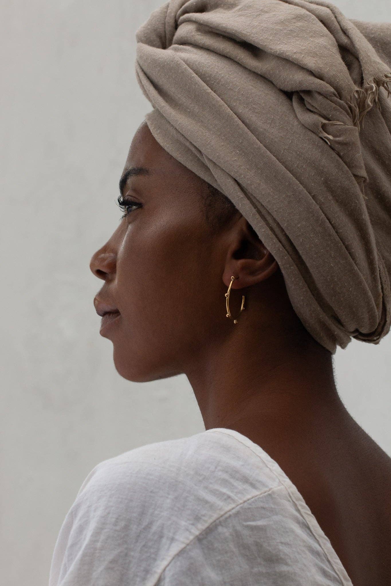 The 'Bentu' Hoops (meaning 'Almost Full' in Tumbuka), are made by melting brass off cuts into small balls, which are then soldered individually and are then coated in a luxuriously thick layer of 14k recycled gold. Offered in small (2 cm diameter) and large (3 cm diameter), the Bentu Hoops offer a timeless look that pair perfectly with any outfit, day or night.