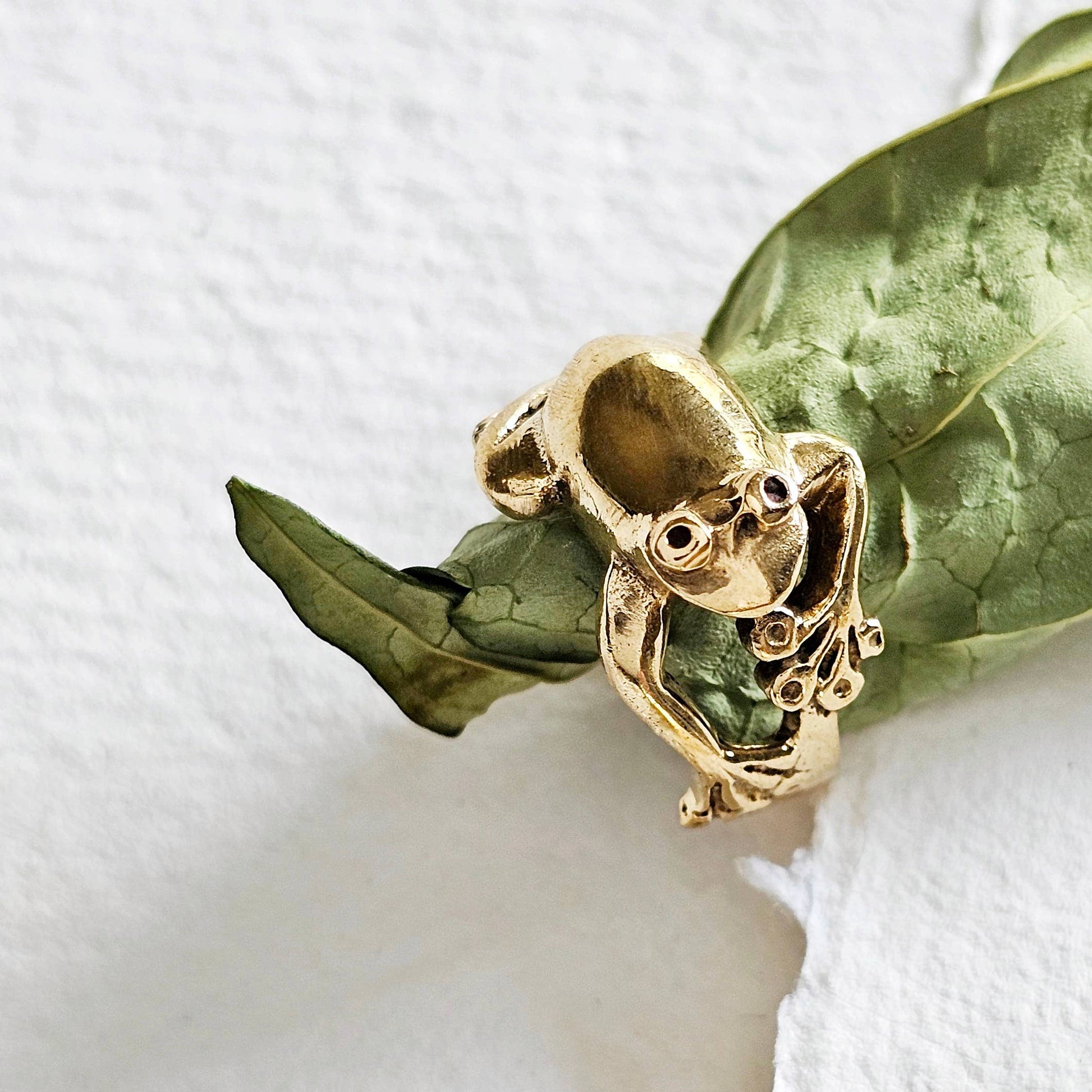 Solid brass frog animal ring. Handcrafted and arrives in logo drawstring protective pouch