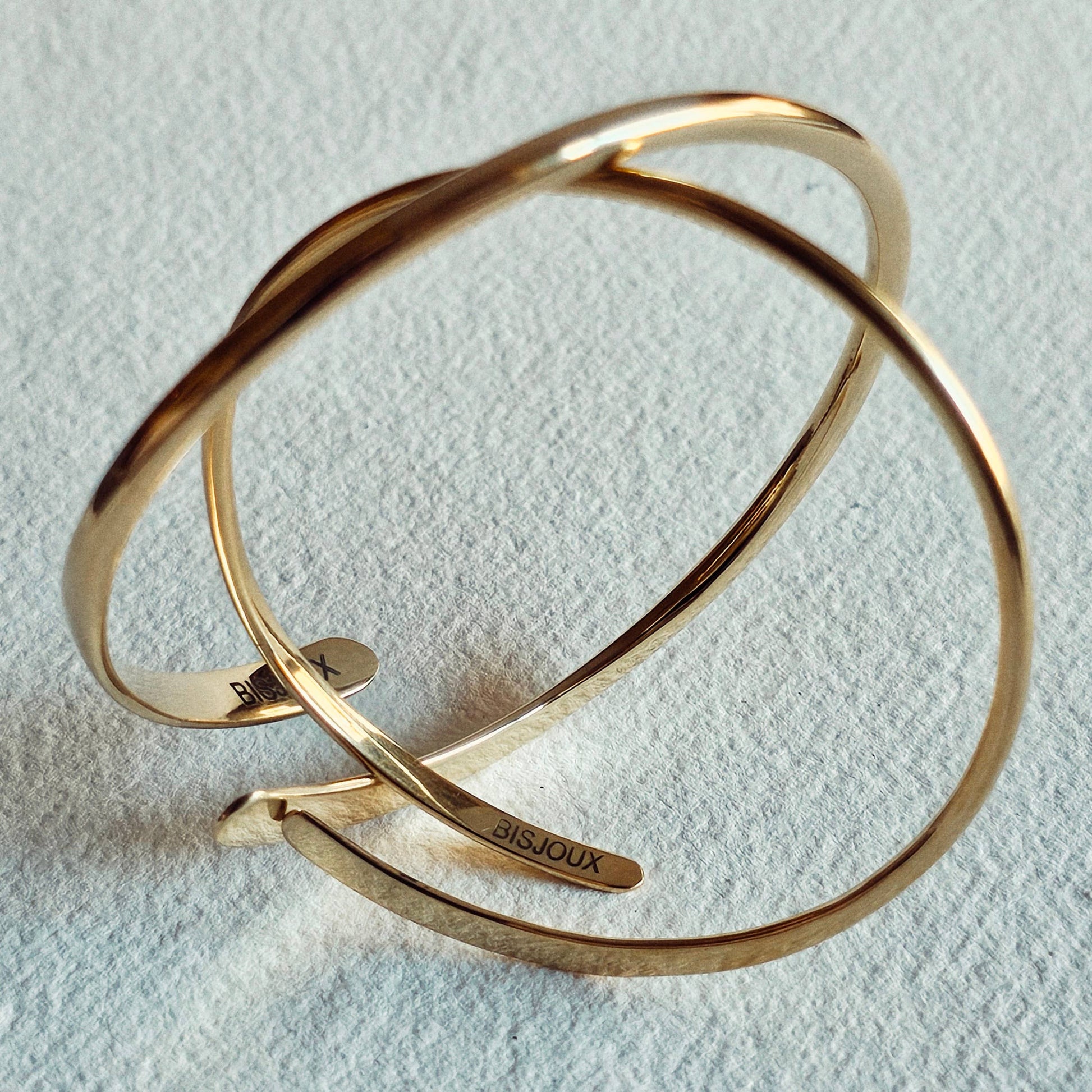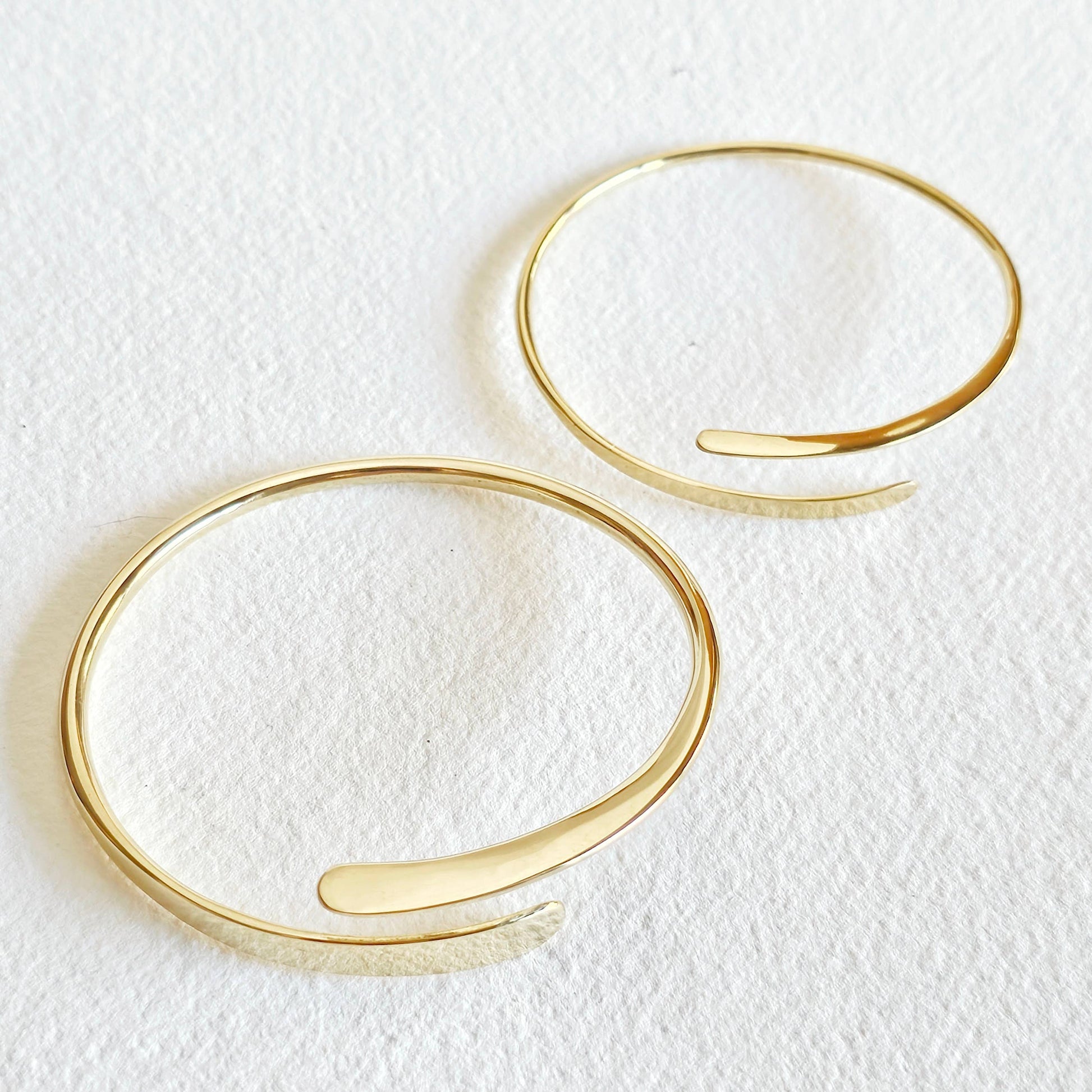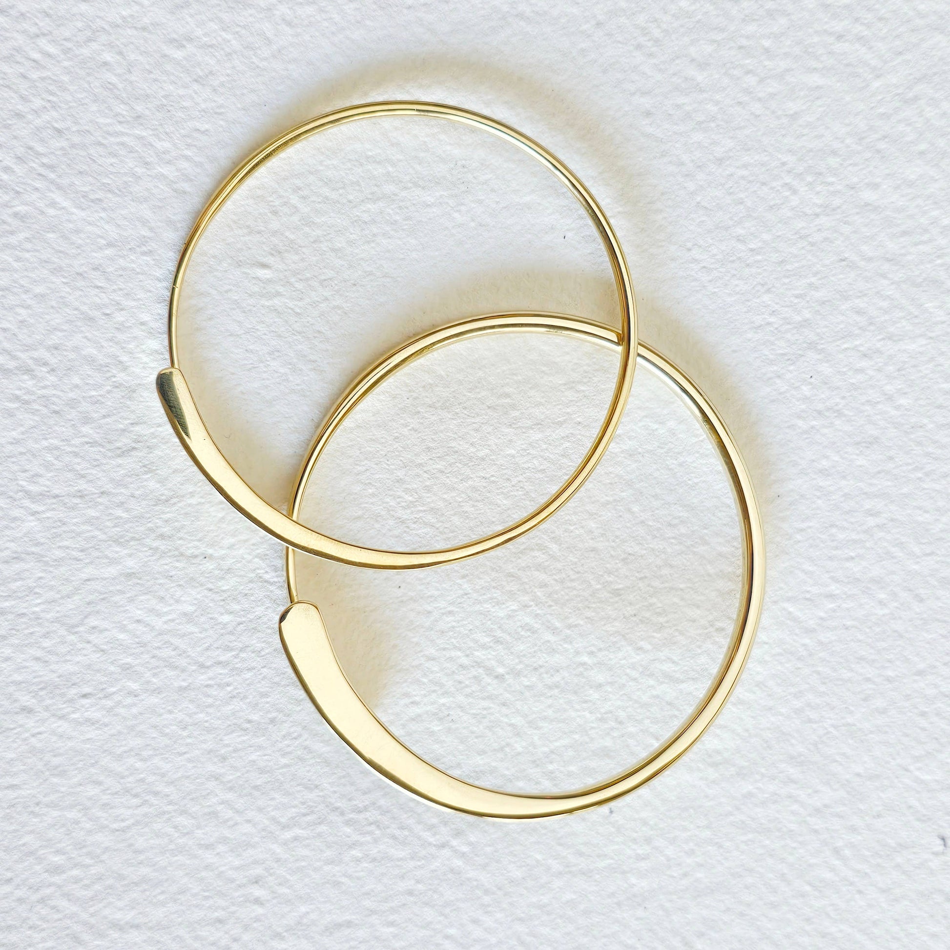 Solid brass handmade thread bangles are back by popular demand. A unique design with 2 alternating flat ends. Available in thick or thin version. Stackable and delicate.