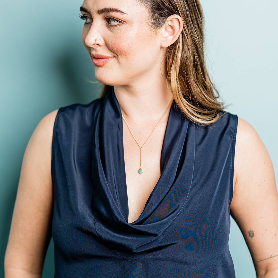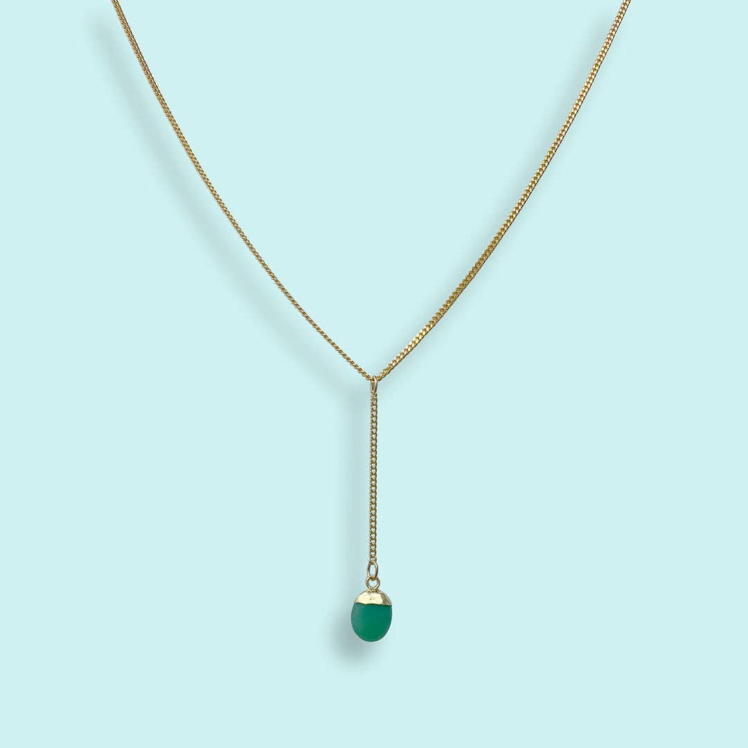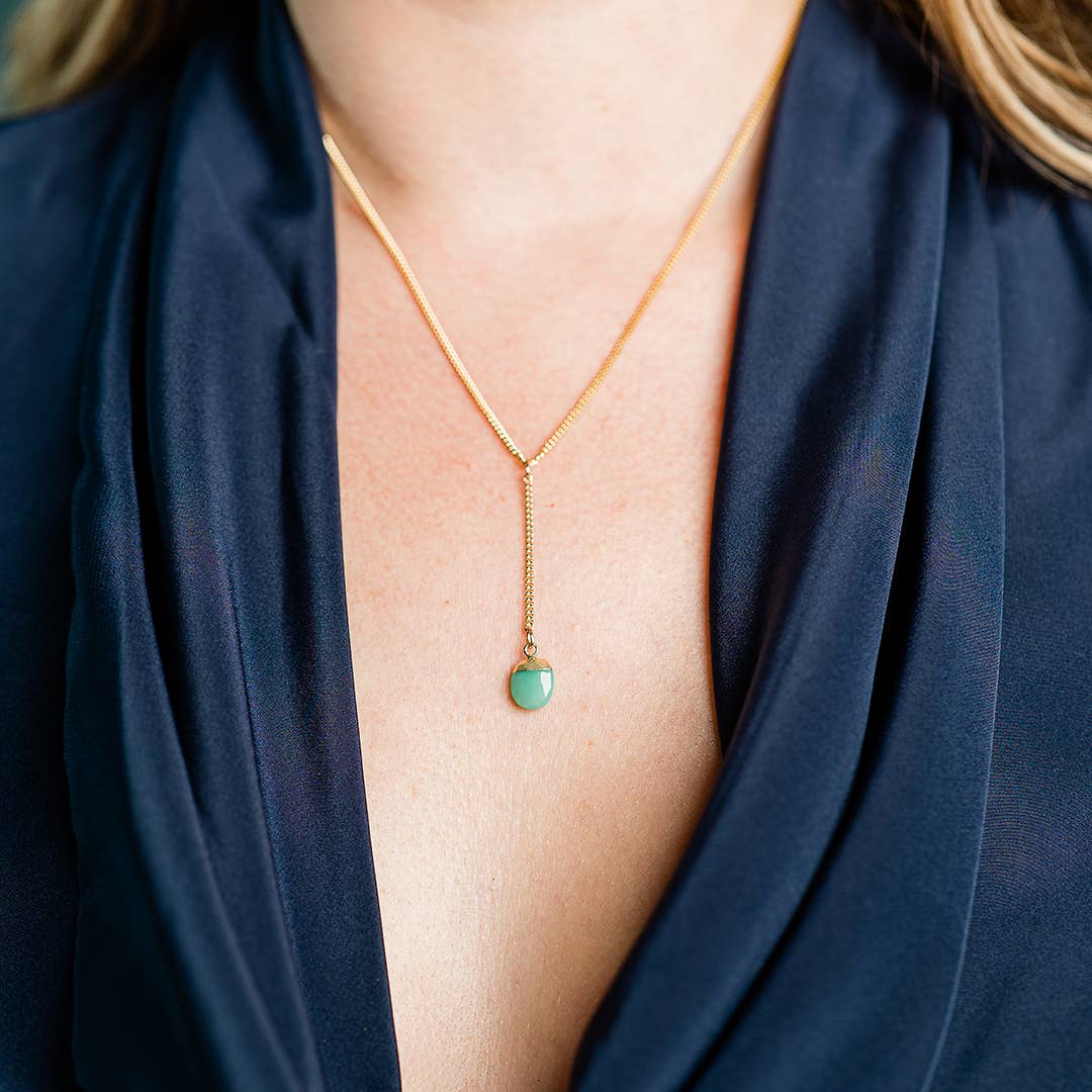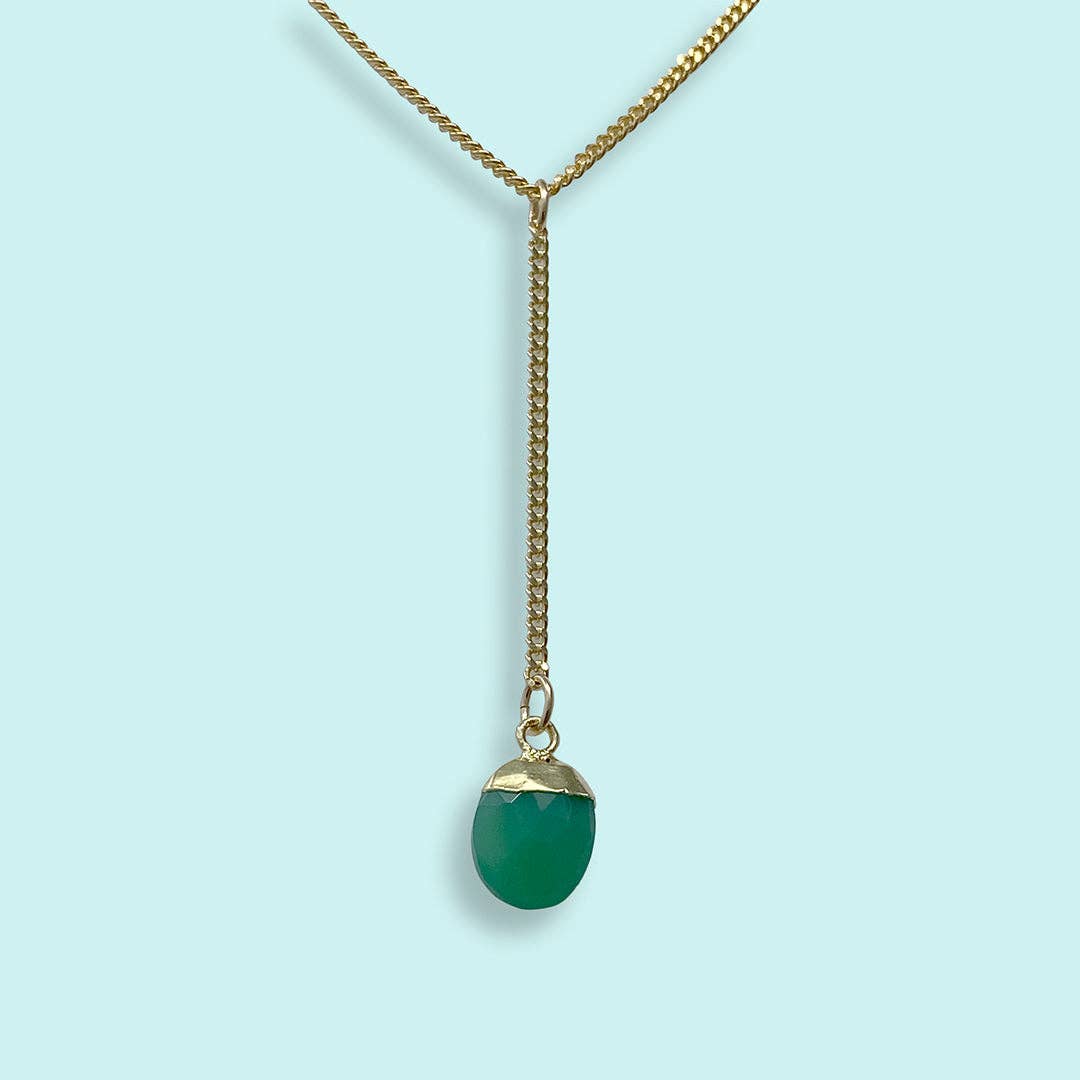 Faceted Green Chrysoprase Stone Y-drop Necklace
