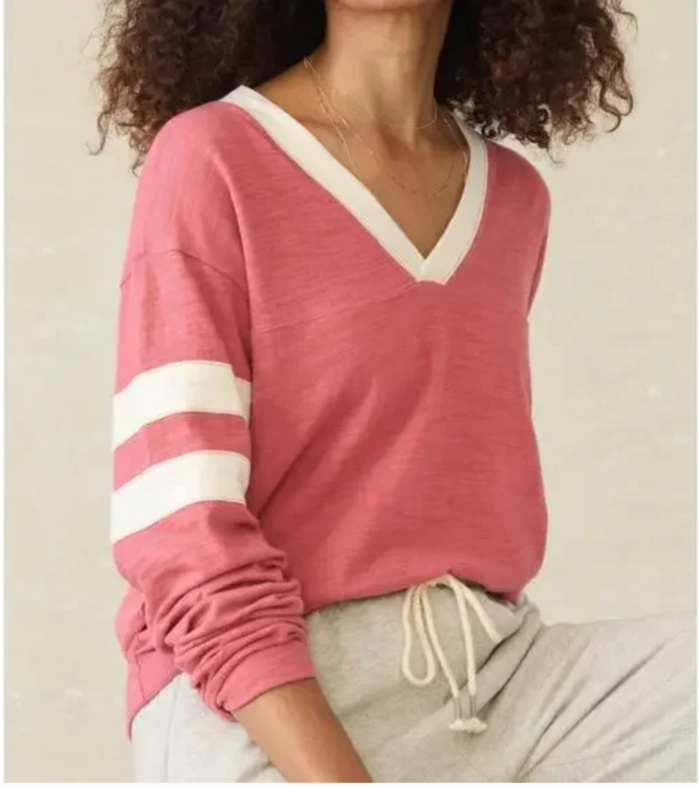 Faherty Organic Cotton Sunwashed Slub Varsity V-Neck | Madder Pink