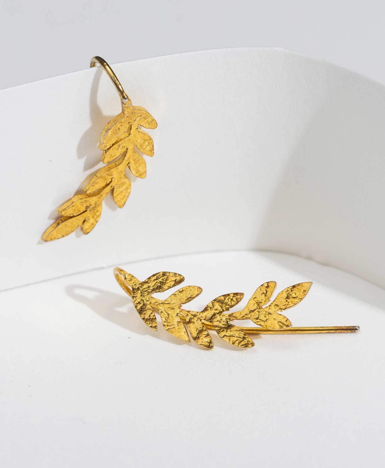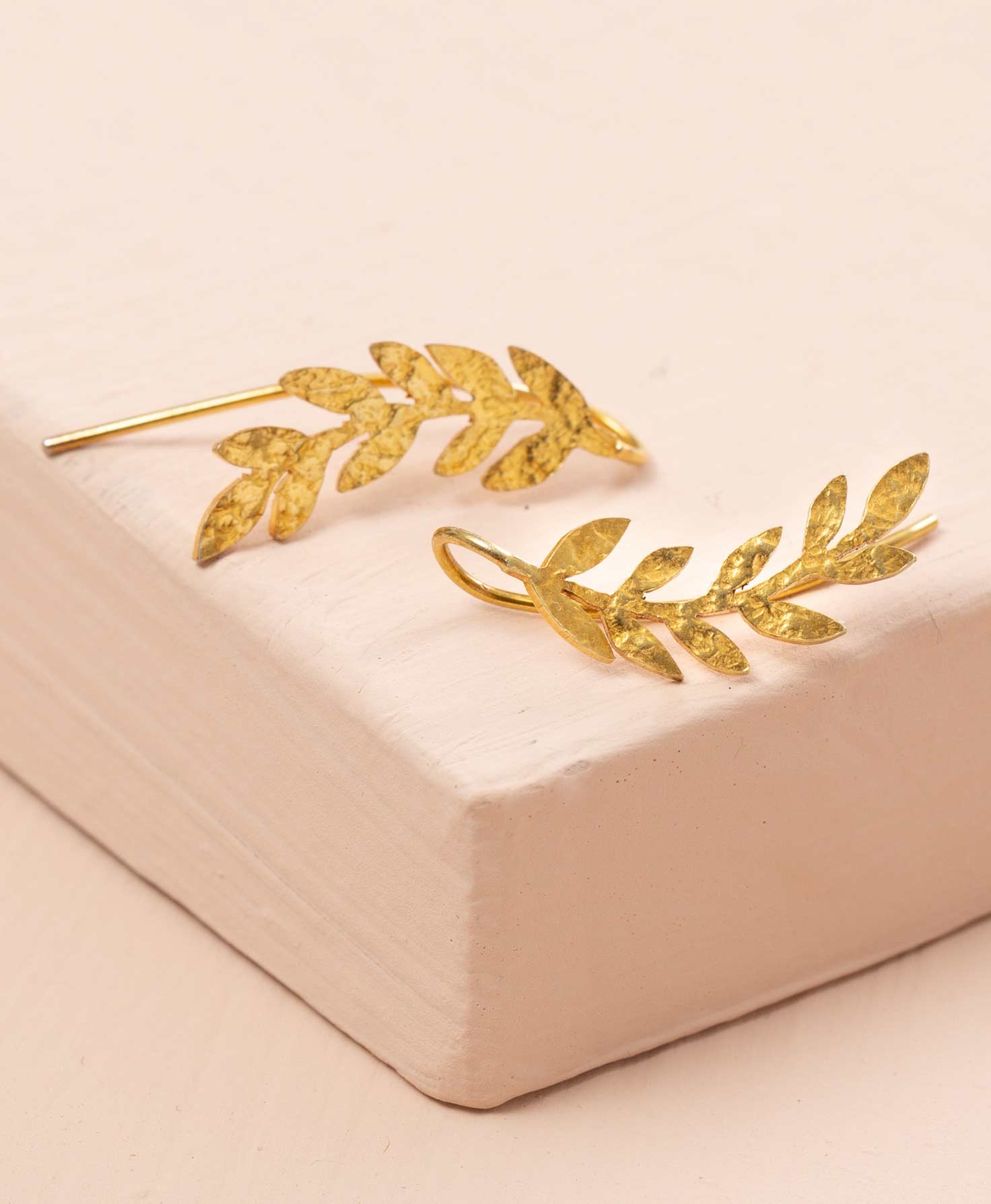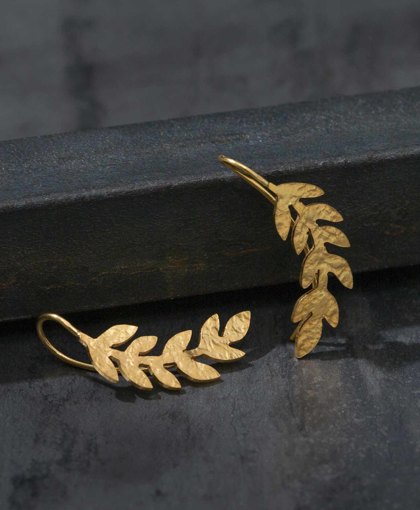 A classic gold leaf design gives a feminine feel to the slightly edgy ear climber style!