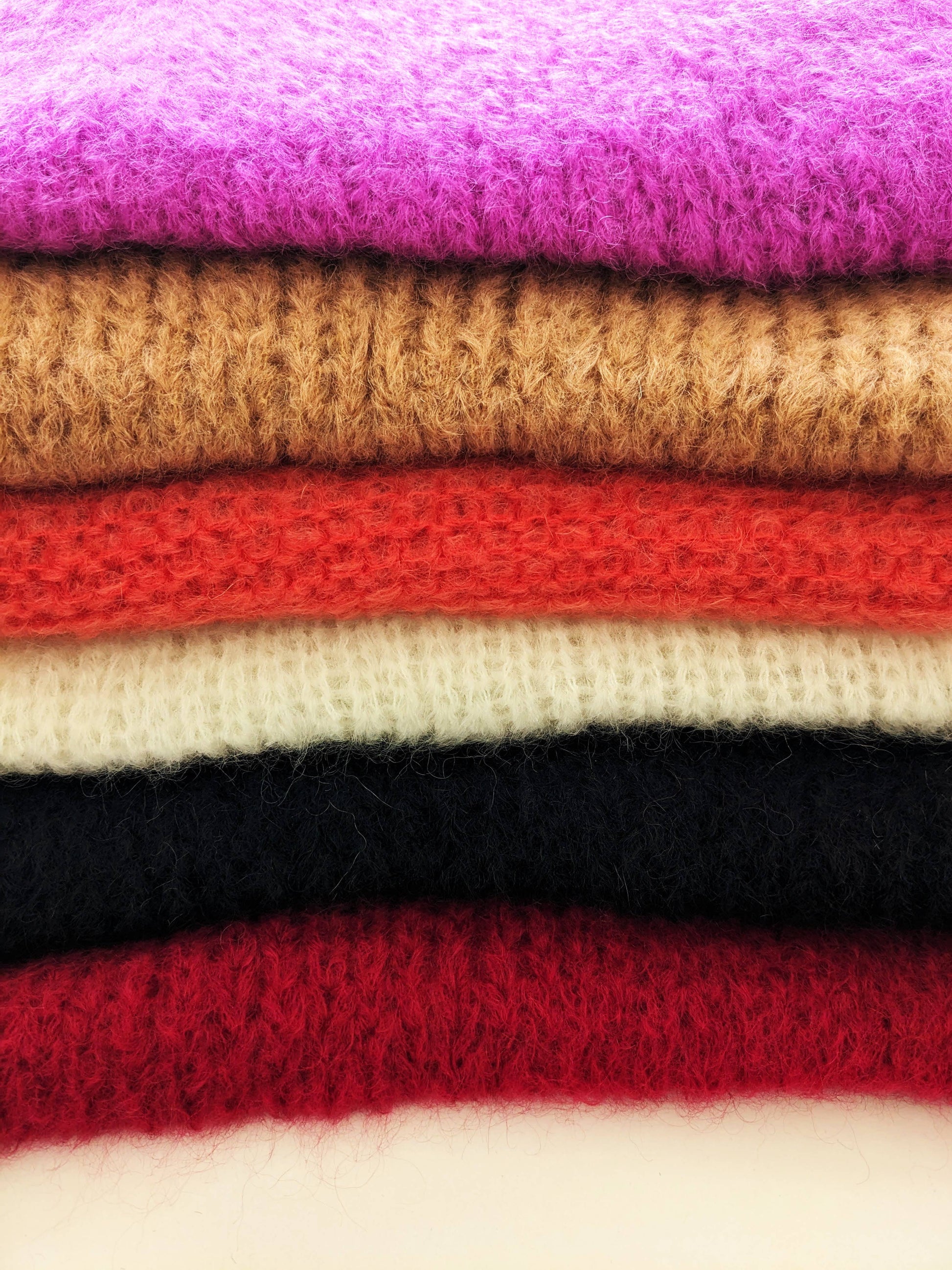 Materials: 82% Superkid Mohair (superkid mohair comes from baby angora goats. It's very delicate, warm and not pilling), 16% Polyamide, 2% Elastane