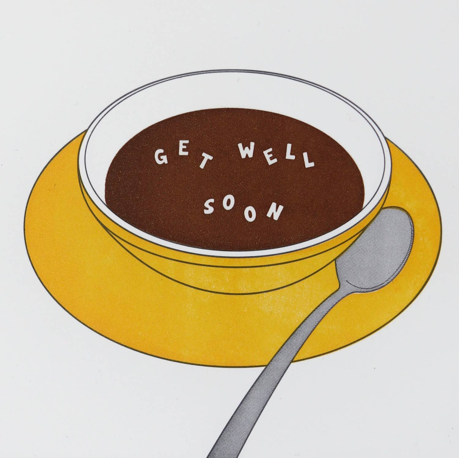 Get Well Soup-er Soon - Letterpress Funny Get Well Card