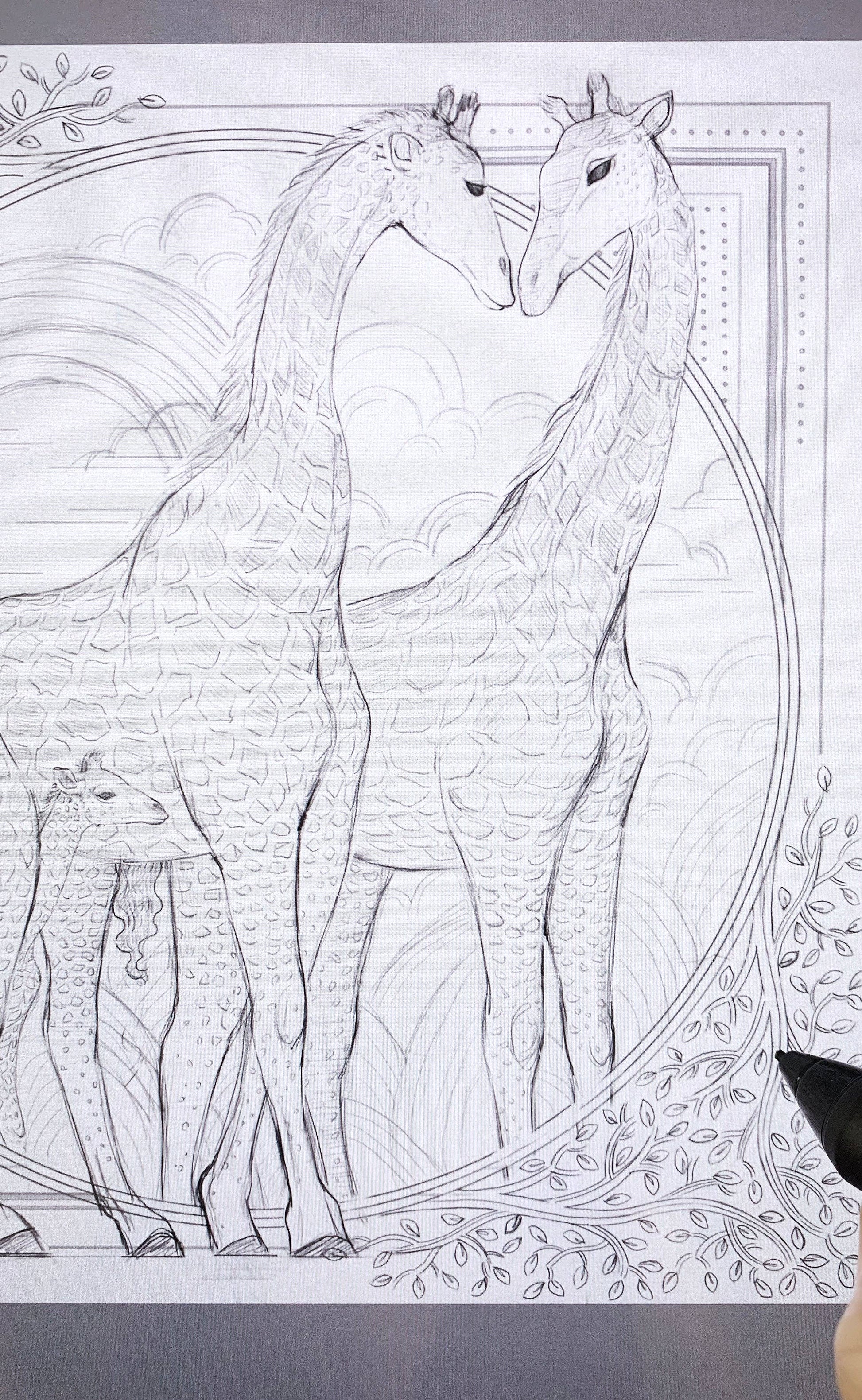 illustrated the scenery of a Giraffe family enjoying the Sunlight in the Grassland Savanna by S0l