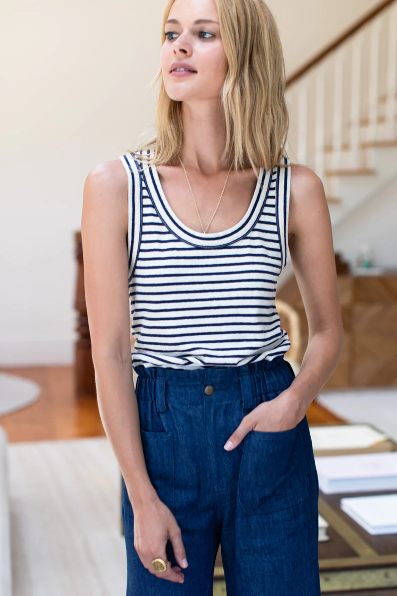 Emerson Fry Go To Tank Top - Navy Stripe Organic