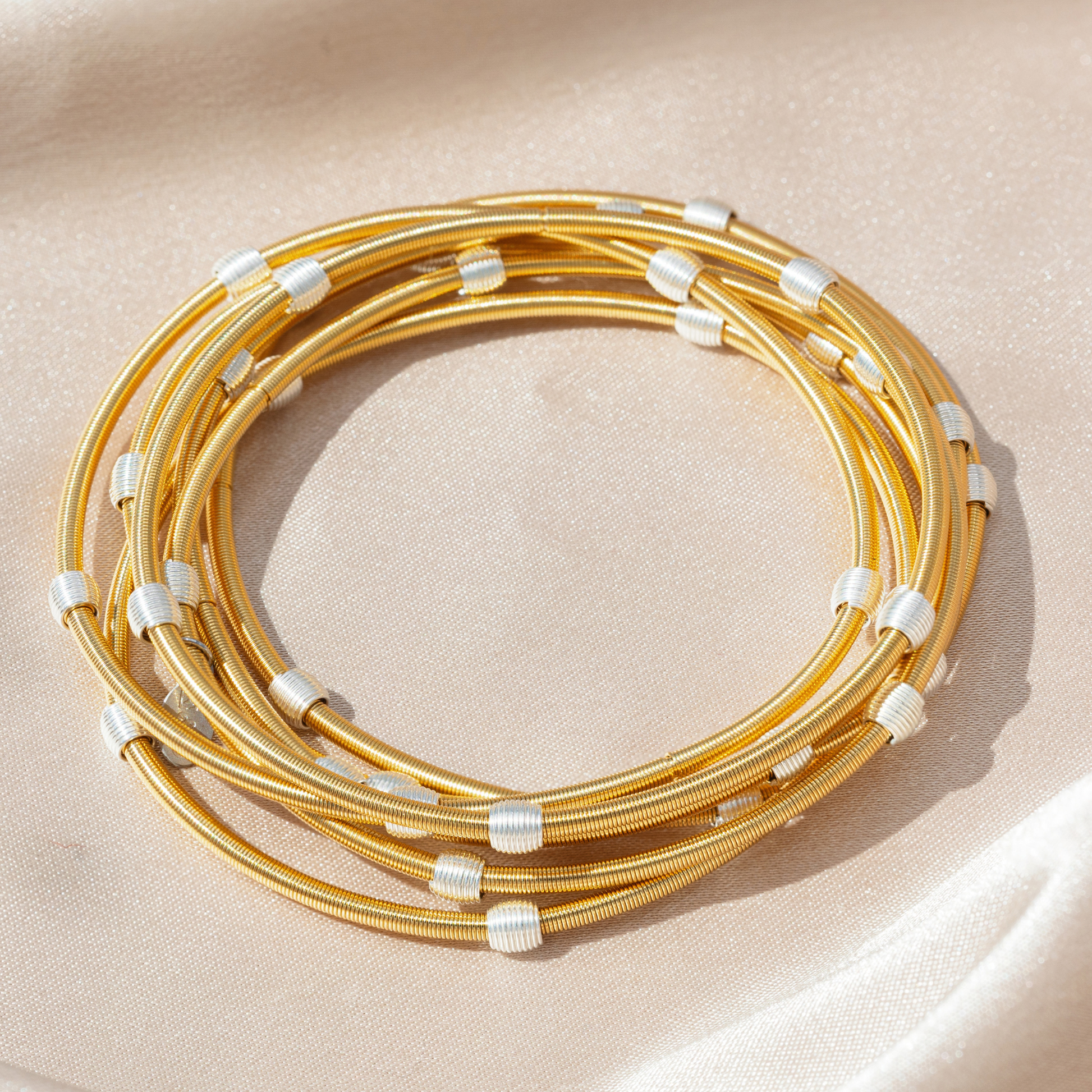 Each bracelet is adorned with spring beads in Silver, Black, or Rose gold.