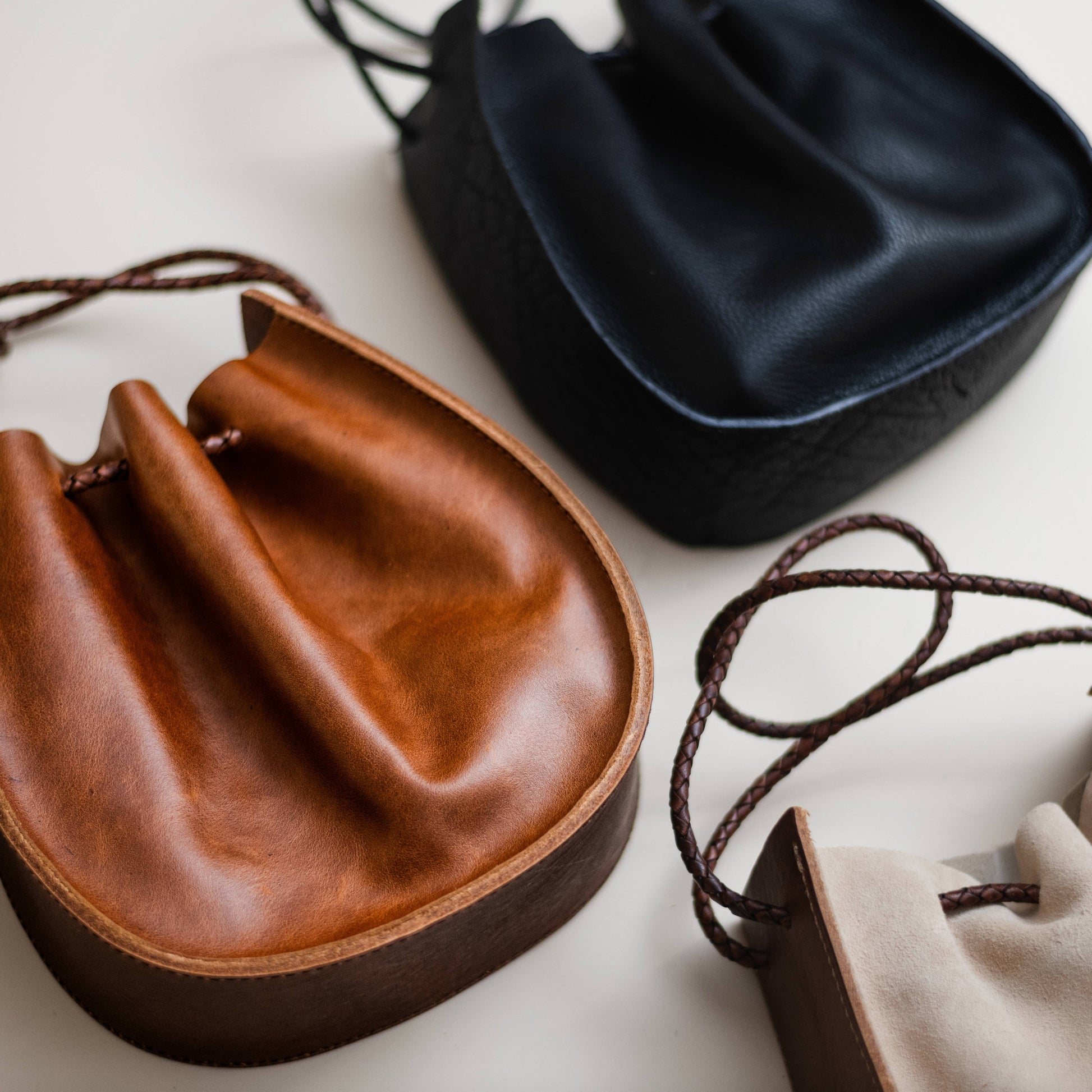 The JOI by Stash is a Japanese-inspired teardrop shape with leather drawstring closure. Use the drawstring strap to wear on your wrist for a night out or clip on the longer strap and wear on your shoulder or across your body all day long.