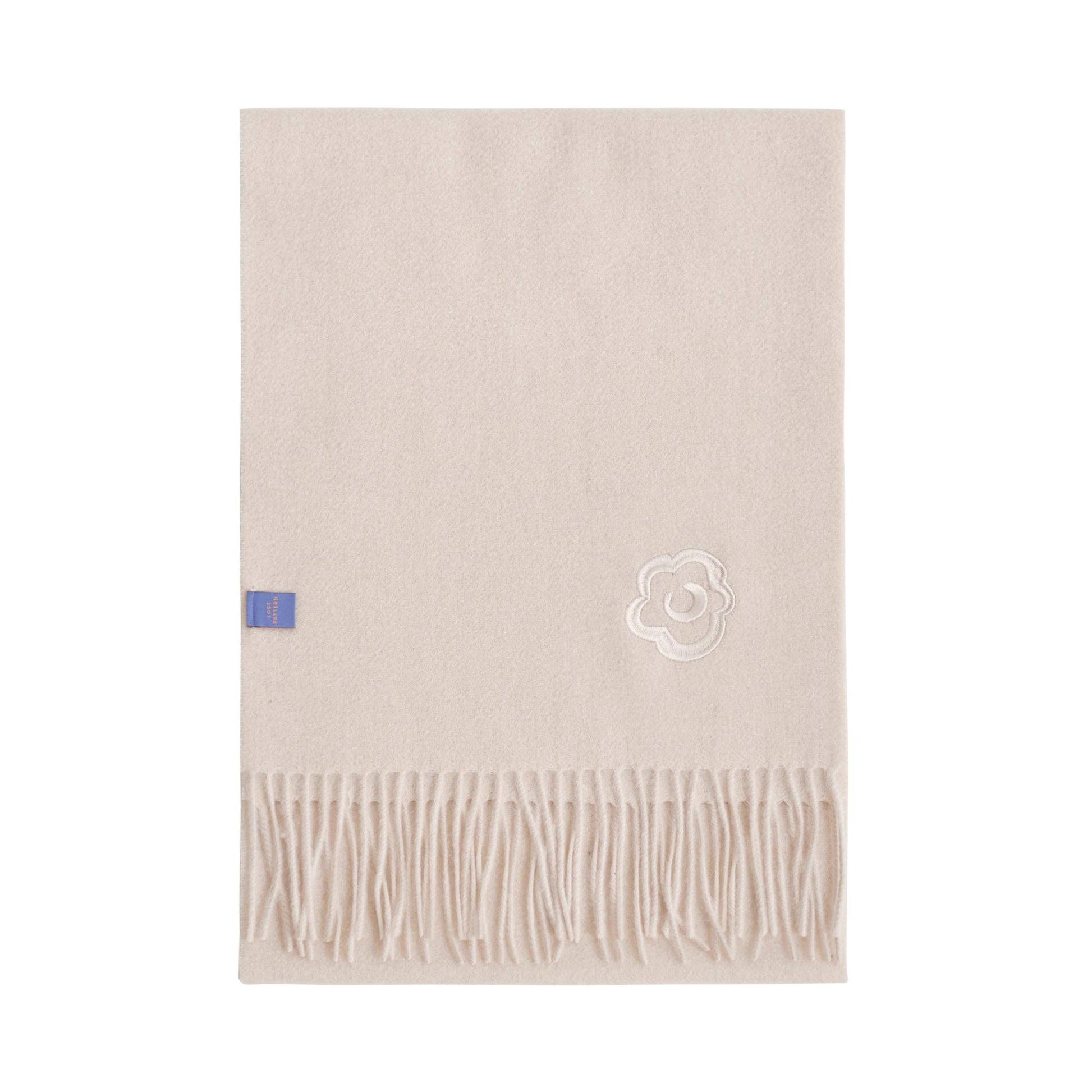 - Lost Pattern's classic cashmere scarf in cream to add a dose of elegance to your everyday look. - Woven with 100% pure cashmere from Mongolia - Heavenly soft, fringed ends on both sides - Ripple effect on fabric from teasels gently hand brushed across the surface - Dimensions: 30 x 180 cm (12"W x 72"L) - Dry clean only