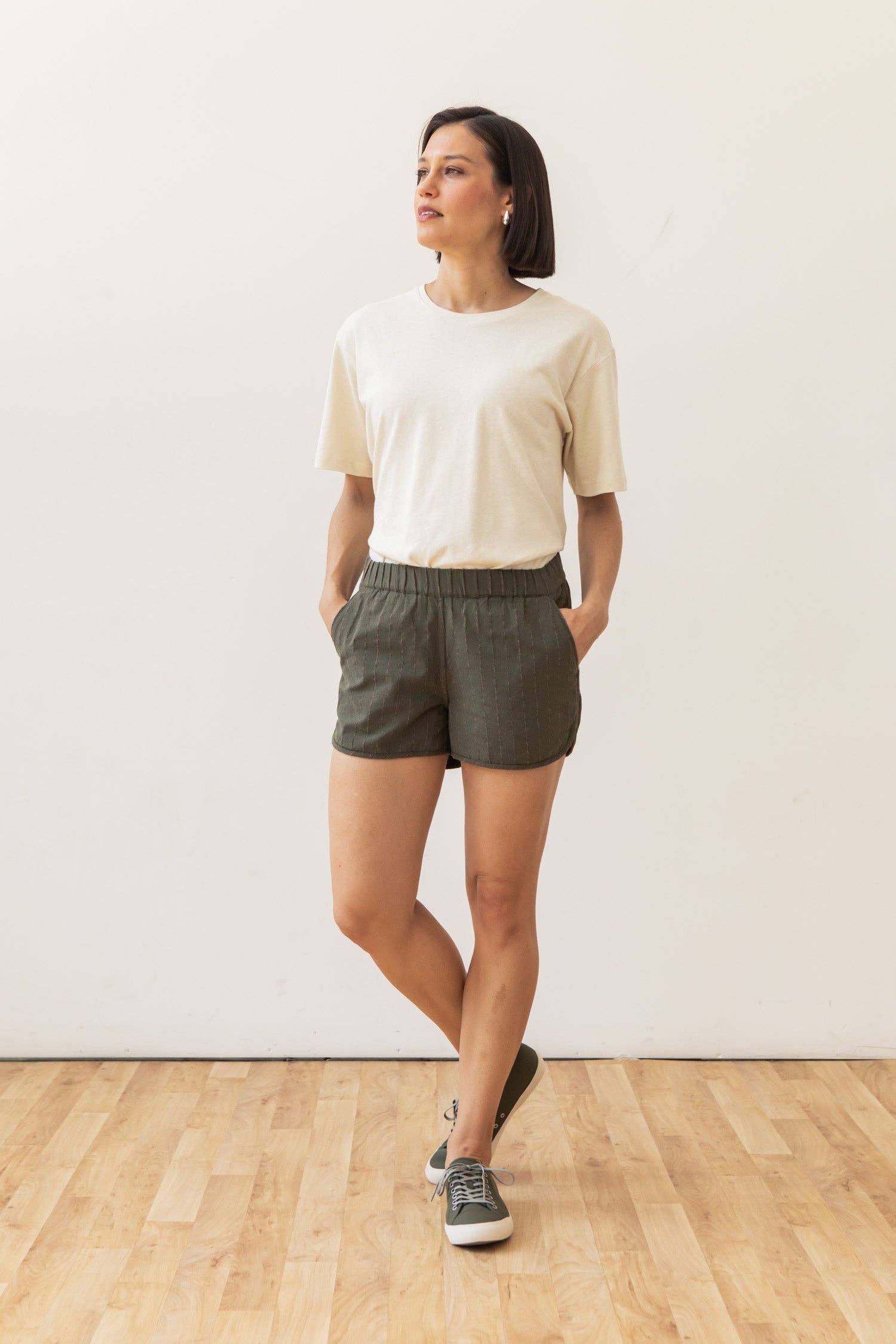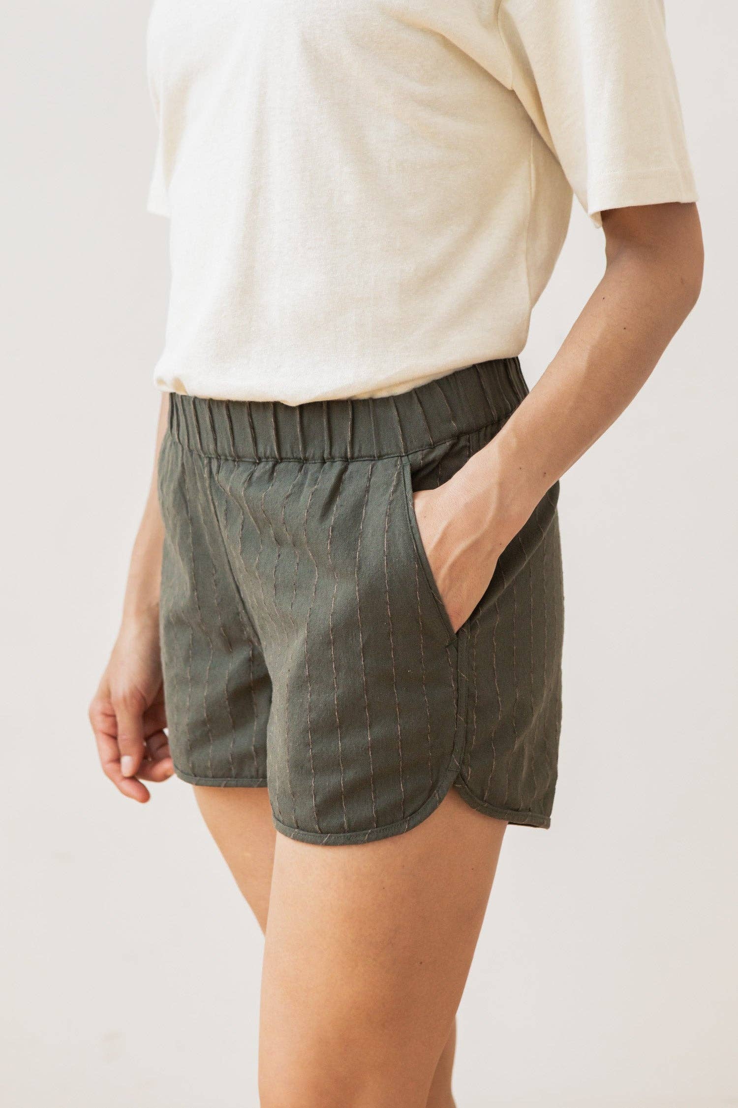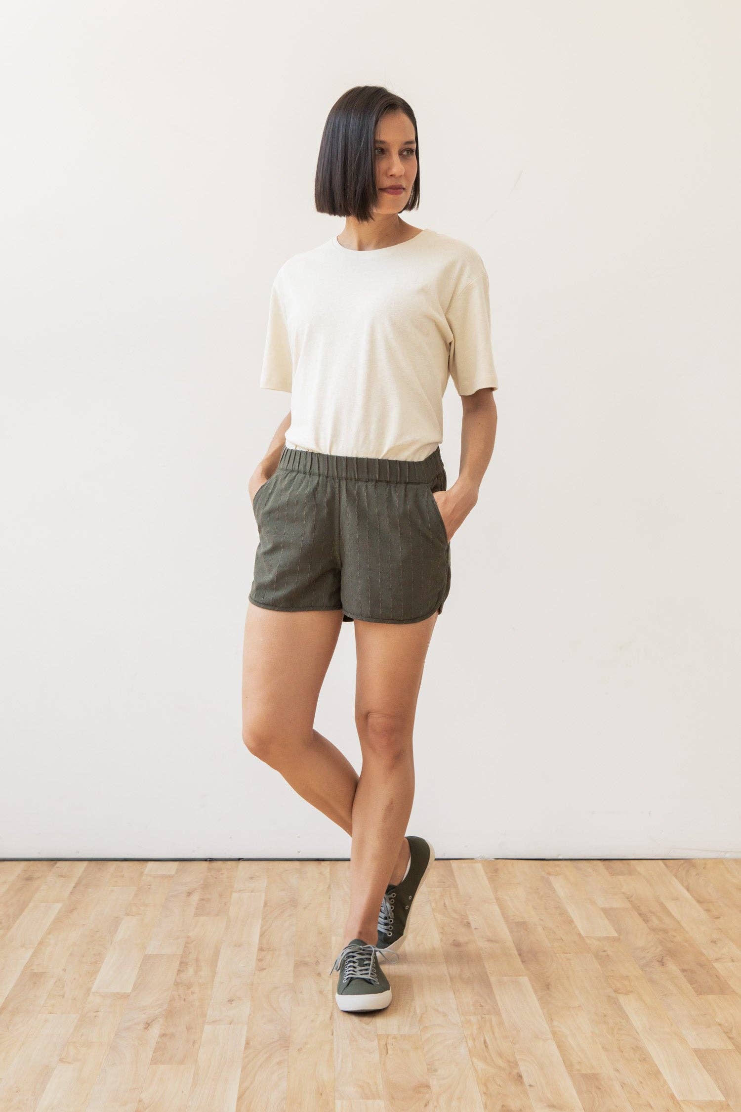 The Luca is our take on the classic track short, updated with pinstripes. These shorts are made from a cotton-linen blend that is lightweight and breathable‚ perfect for summer play. An elastic waist gives them a snug yet comfortable fit.