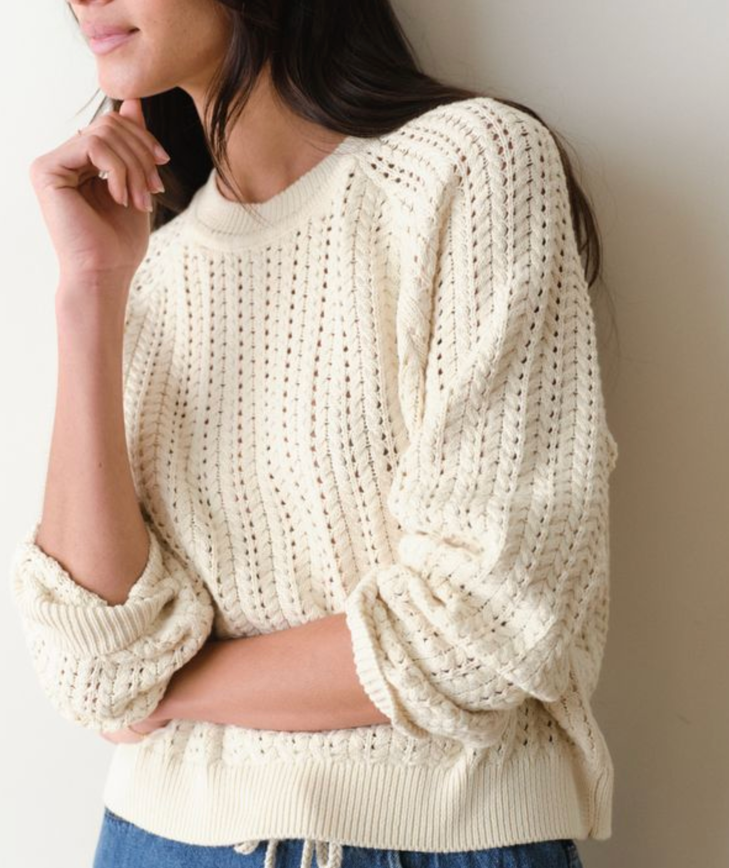 MIna Pointelle Sweater | Cream