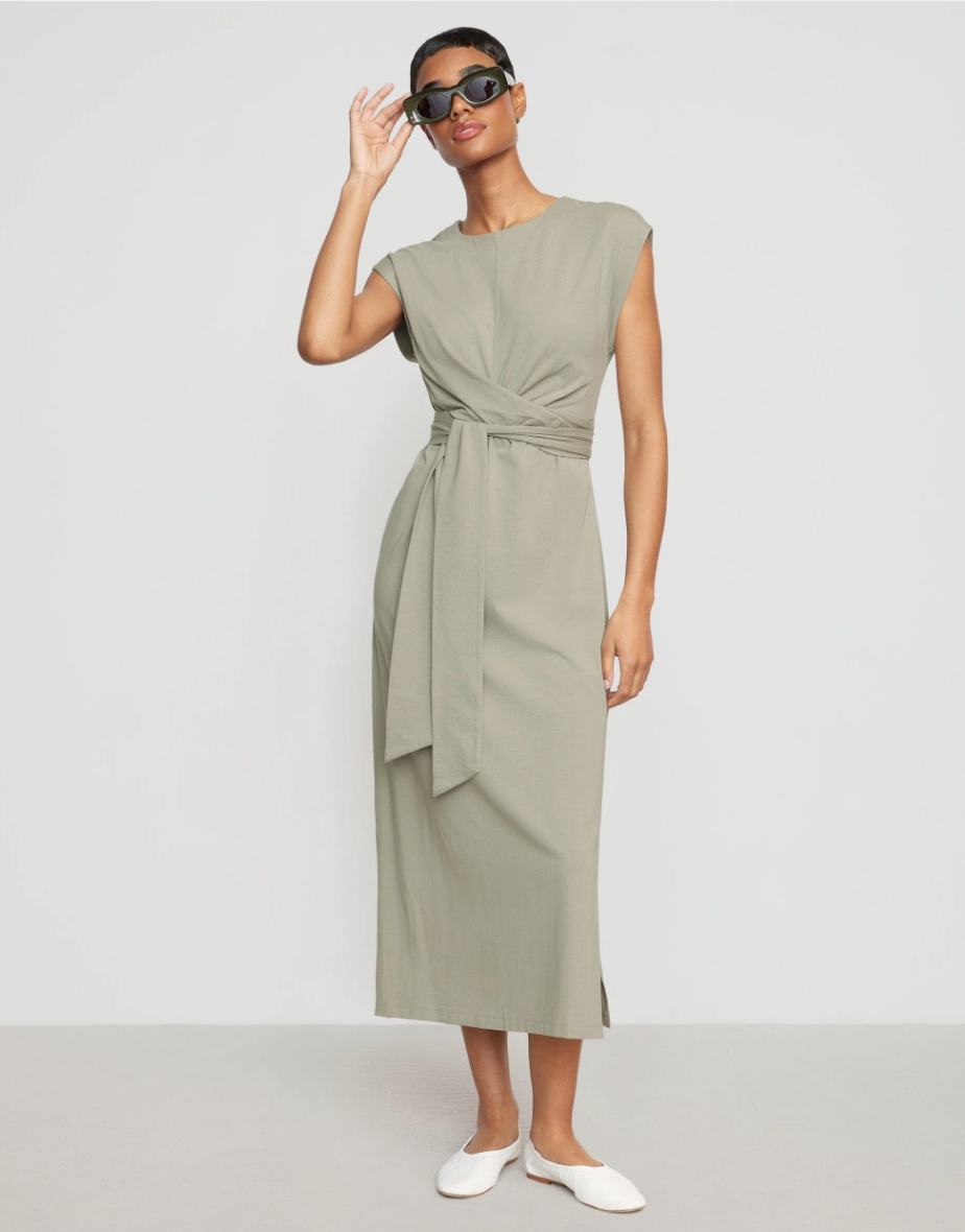 Our modern take on the t-shirt dress in breezy organic cotton jersey — universally flattering and effortlessly polished, with a functional waist-tie that’s built-in.