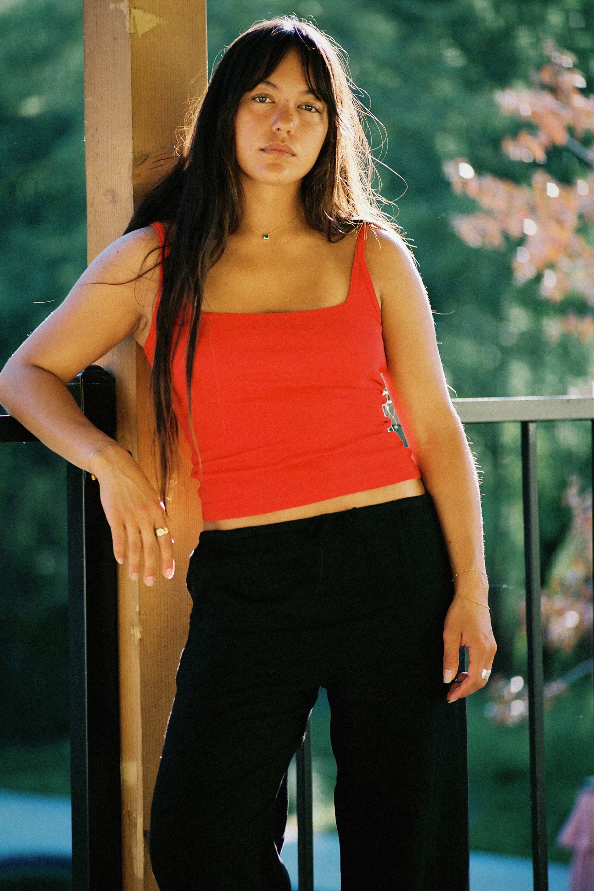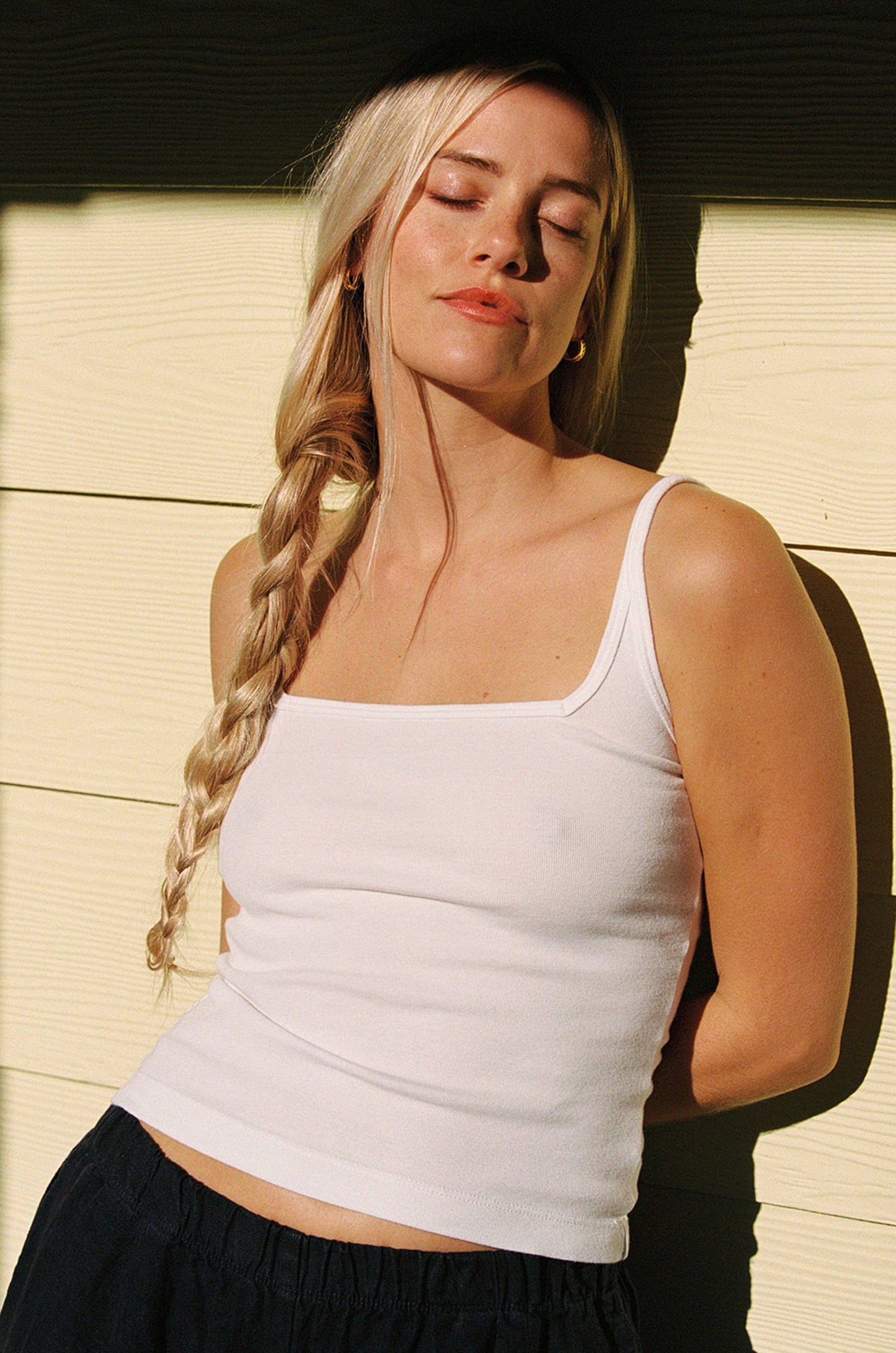 A 90's style cami with a modern twist. Made from a fine organic baby rib locally knit in Los Angeles. Garment dyed and pre-shrunk.